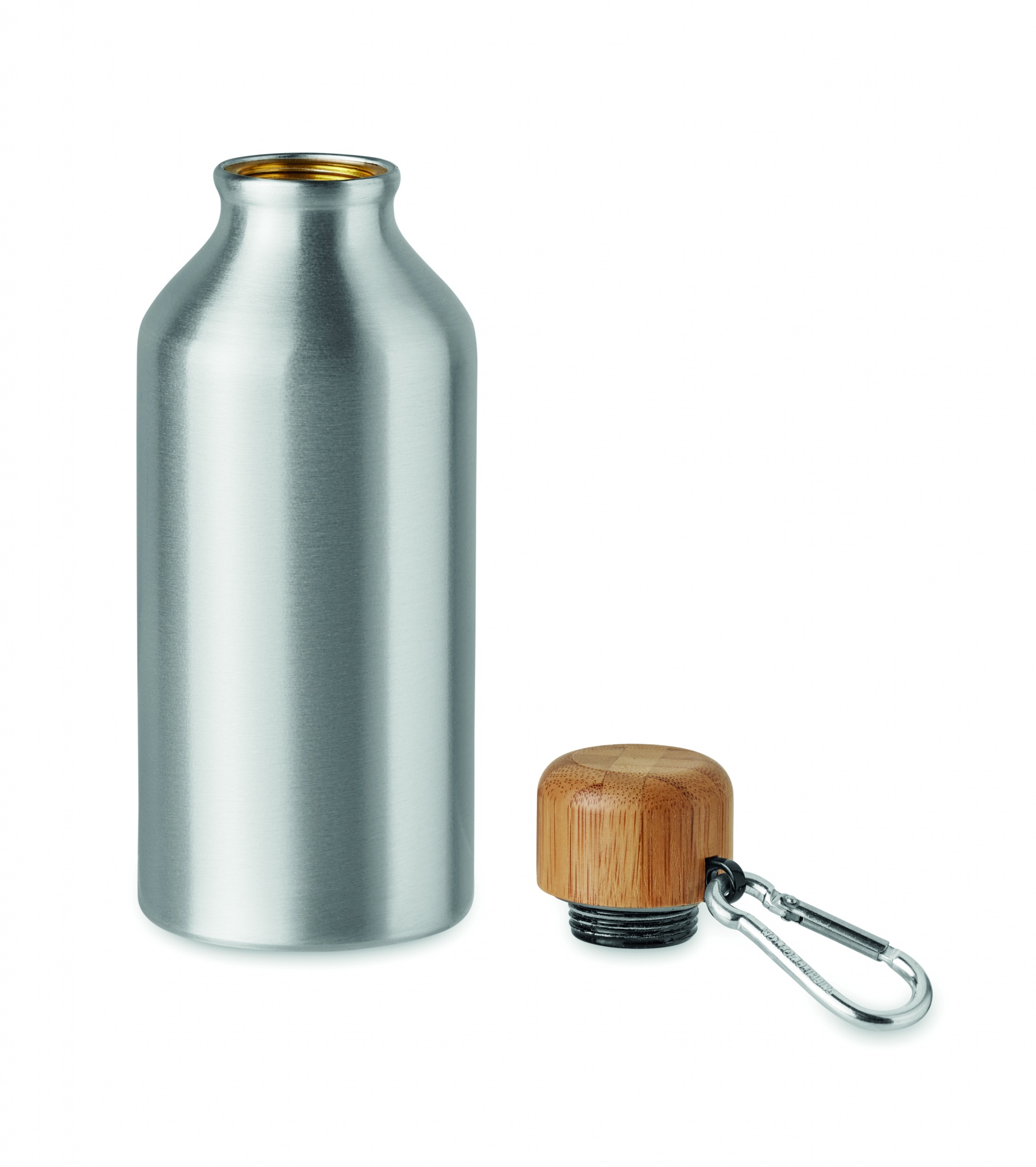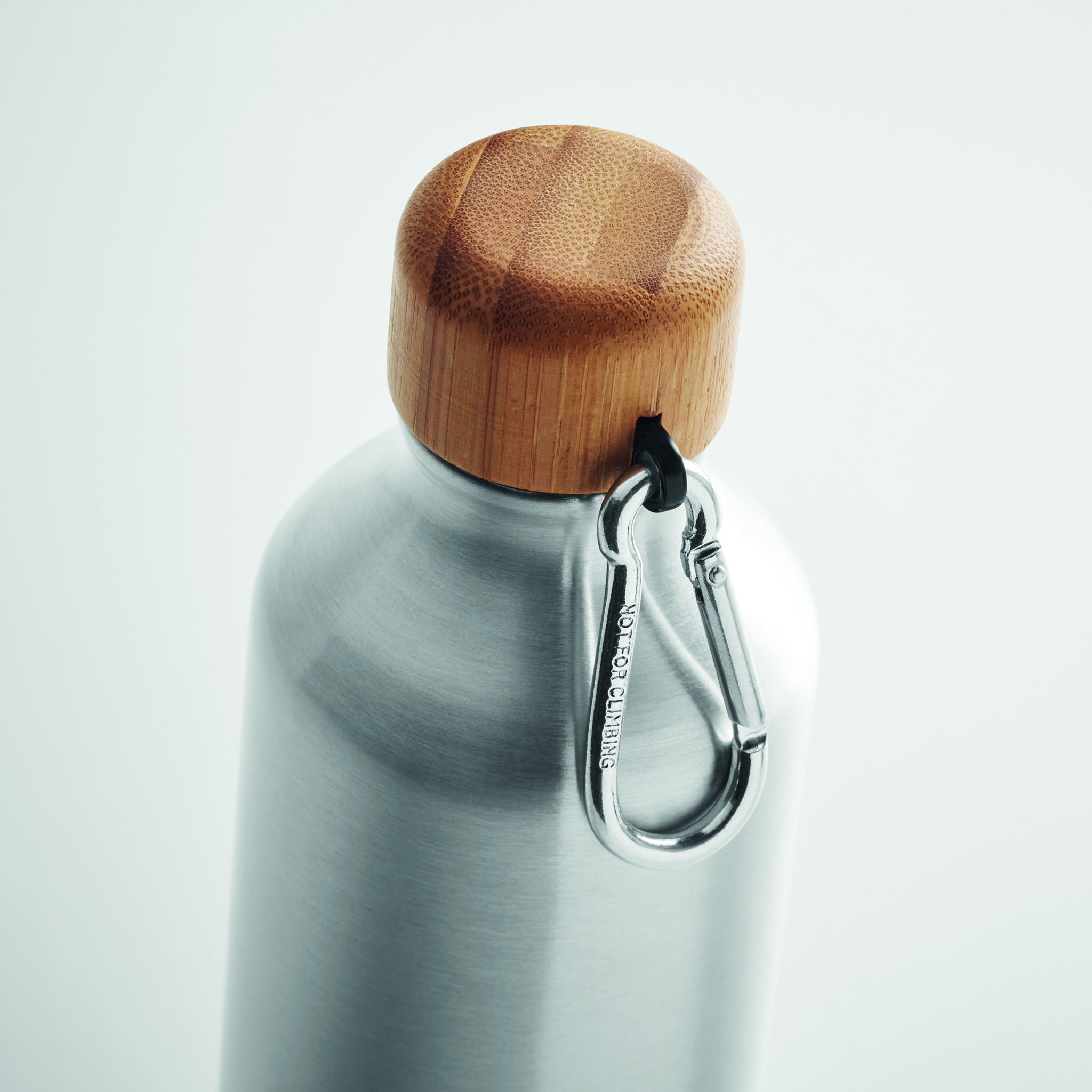 Üheseinaline Alumiiniumpudel bambusest kaane ja karabiiniga. Mahutavus: 400 ml. Karabiin ei ole mõeldud ronimiseks (mitteprofessionaalseks kasutamiseks). Bambus on looduslik toode, ühe eseme värvis ja suuruses võib esineda väikesi erinevusi, mis võivad mõjutada lõppviimistlust.