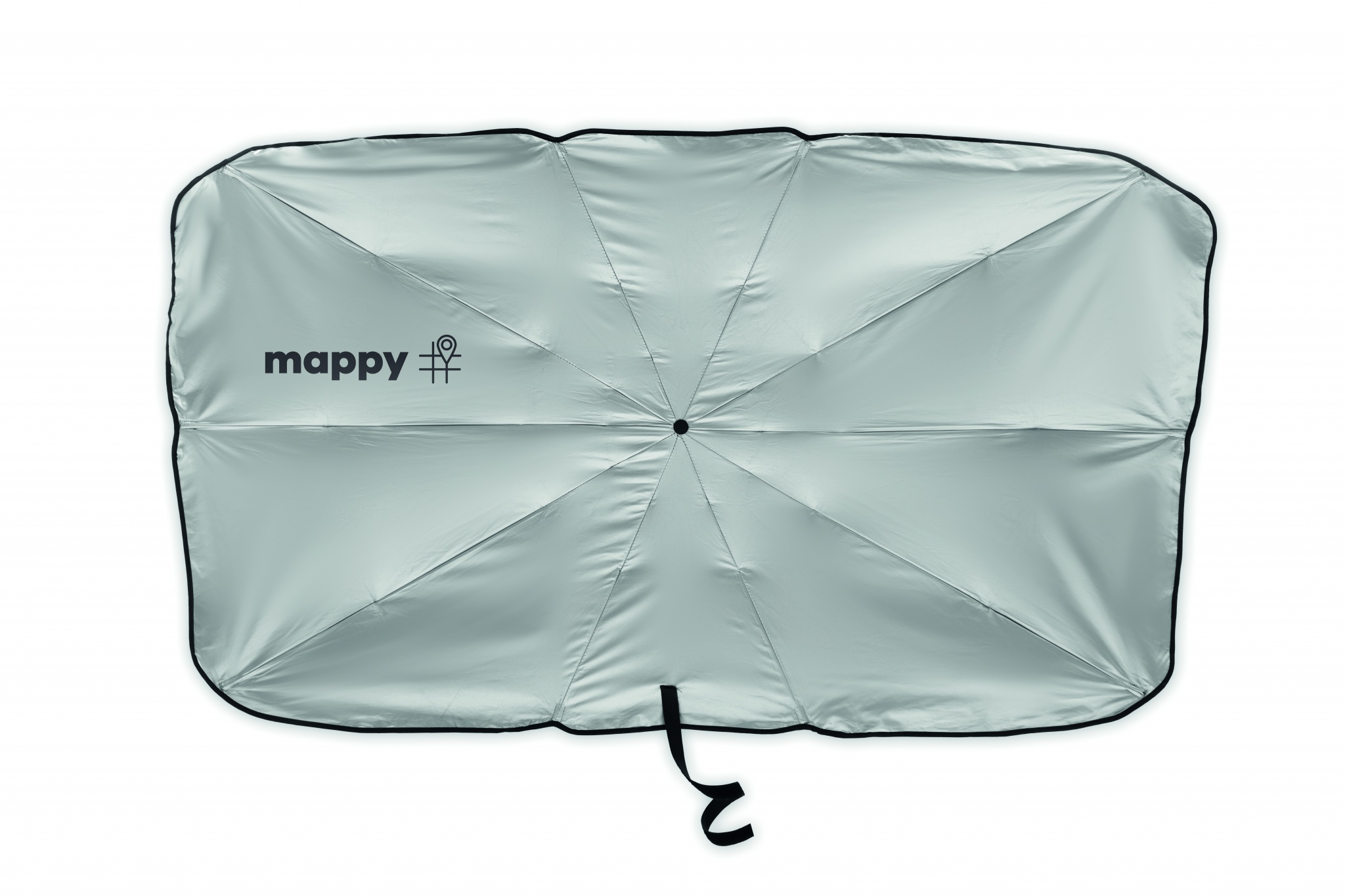 Esiklaasi päikesevari auto vihmavari 190T pongee küljes 1 hõbedase voodriga. Käsitsi avamine/sulgemine.