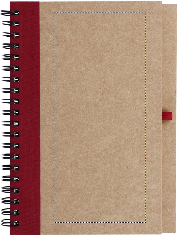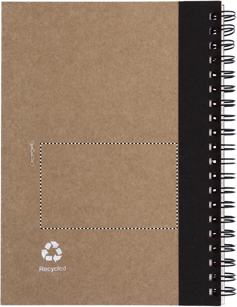 Taaskasutatud paberist märkmik koos sobiva pliiatsiga. Kahejuhtmeline. 140 tavalist taaskasutatud paberilehte (70 lehte). Sobiv nupuga pastapliiats taaskasutatud karbis ja biolagunevas plastis. Sinine tint. Sobiv elastne pliiatsihoidja.