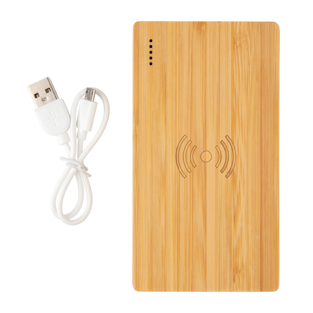 Logotrade reklaamtoote foto: Bambusest 4000 mAh juhtmevaba 5W akupank