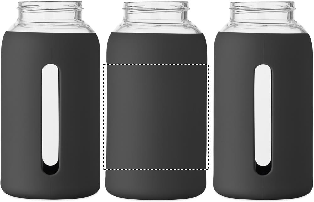 Kõrgborosiilikaatklaasist pudel silikoonümbrise ja PP-kaanega käepidemega. Mahutavus: 600 ml