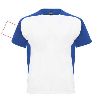 Tehniline ja hingav kangas. Kerge kaelus sobivate kaetud õmblustega. Raglaan varrukad ja kontrastsed küljepaneelid. Eemaldatav etikett.
