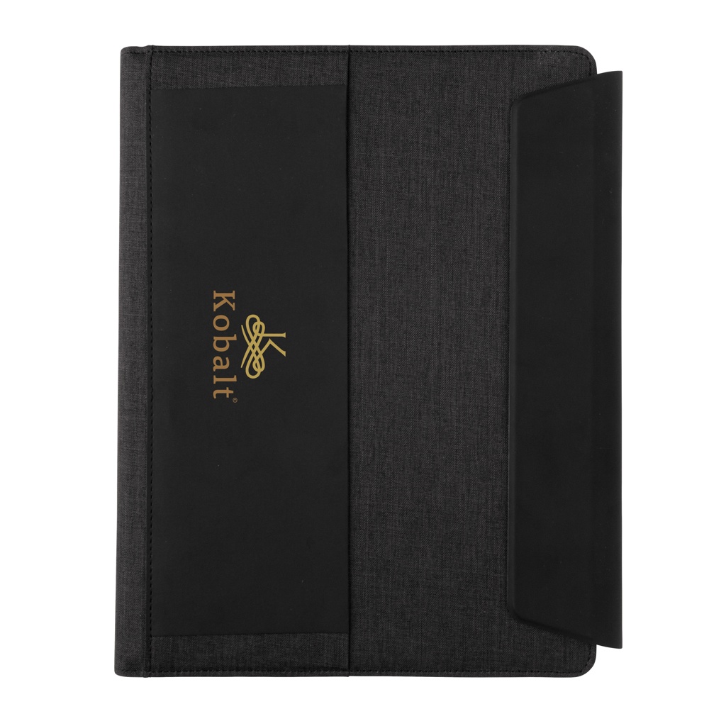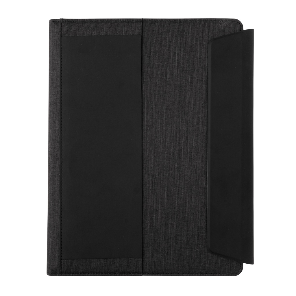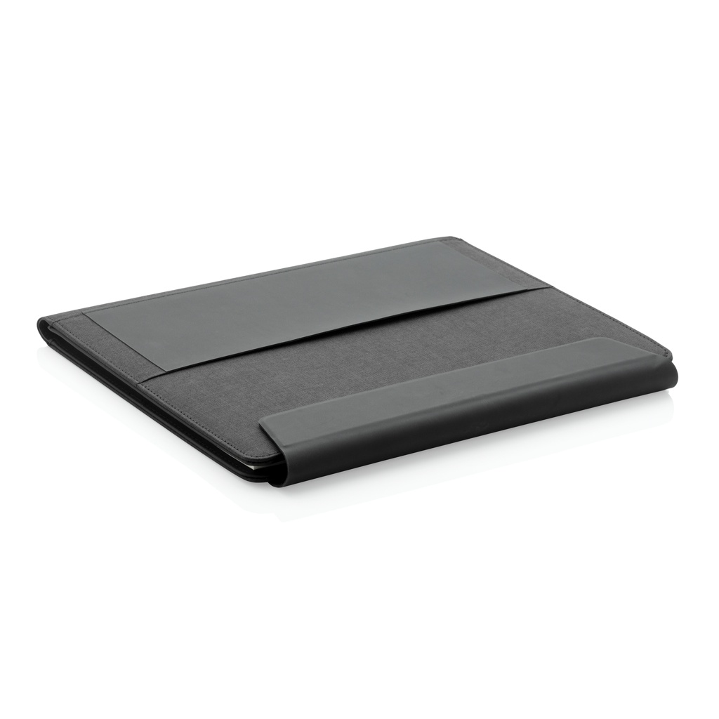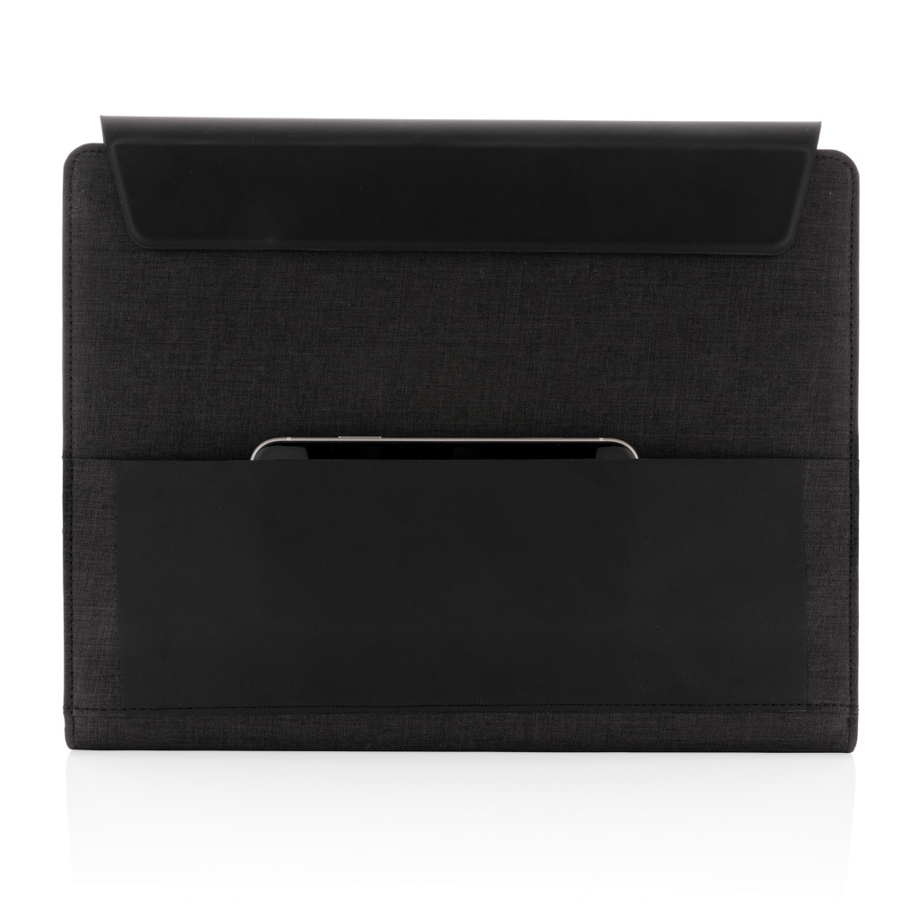 See A4 portfell pakub juhtmevaba laadimise võimalust. Kaasasolevat välist toitepanka saab kasutada ka iseseisvalt. Stiilses portfellis on sisseehitatud juhtmevaba laadimistelefoni alus, elastne pliiatsiaas, kolm visiitkaardihoidikut ja lisataskud. Märkmikus on 20 lehte (80 gsm) kreemikat joonelist paberit. Valmistatud polüestri ja PU-naha segust. Sisend: 5V/2A; Väljund: 5V/2A. Juhtmeta sisend 5V/2A, väljund 5V/1A. Saadaval täisvärvilises kinkekarbis.