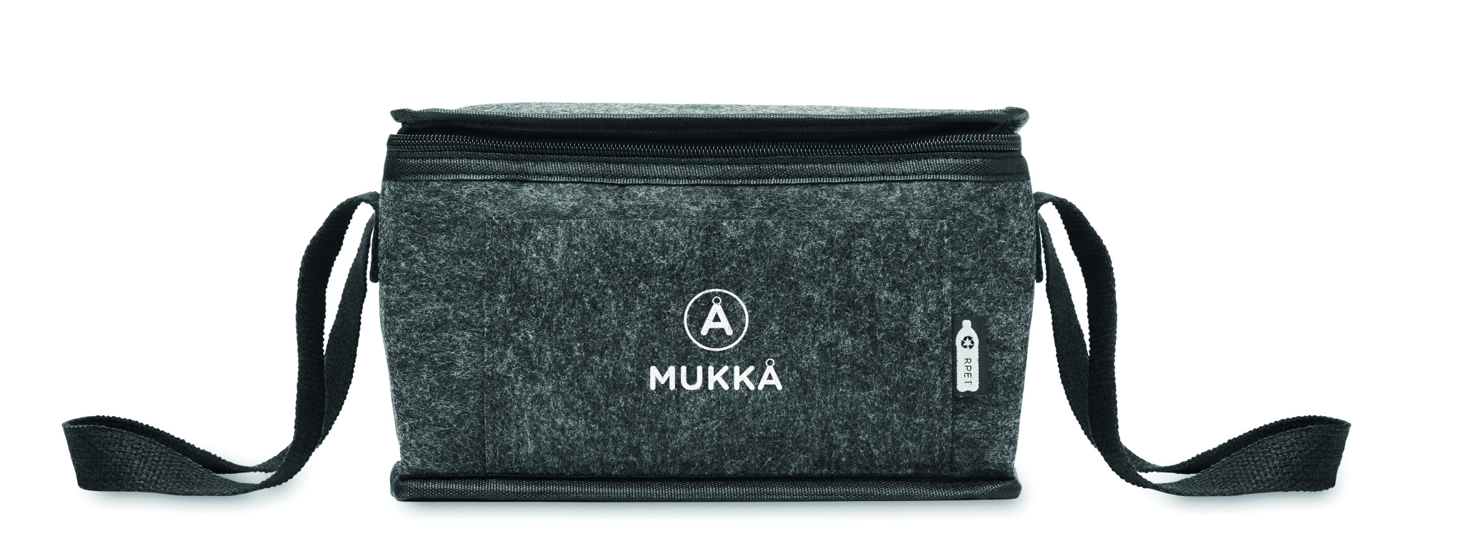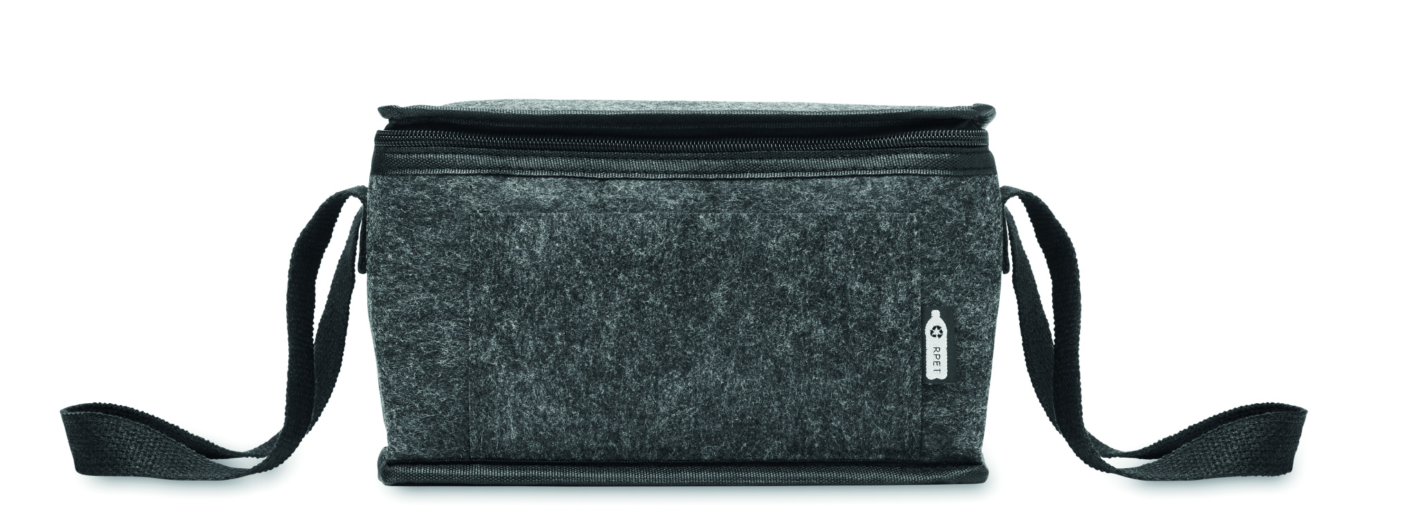 RPET vildist külmakott esitaskuga. 1 mm RPET vilt ja 3 mm isolatsiooniga alumiiniumlamineeritud foolium. Mahutavus: 5L.