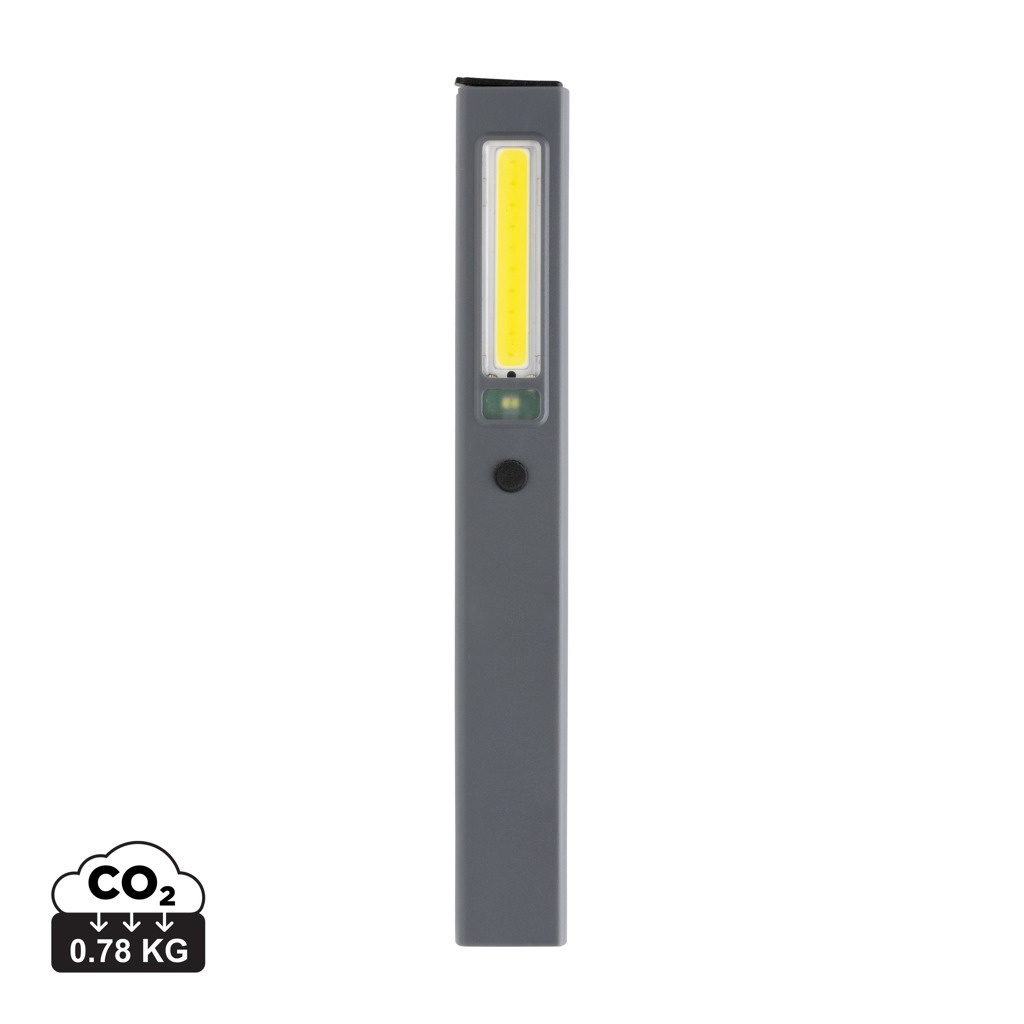 Taskumõõdus kontrollvalgusti, mis on valmistatud RCS-sertifikaadiga taaskasutatud ABS-plastist. Taaskasutatud kogusisu: 33% kauba kogumassist. RCS-sertifikaat tagab taaskasutatud materjalide täielikult sertifitseeritud tarneahela. Töötuli kasutab taaslaetavat A-klassi 520 mah liitiumakut, nii et patareisid pole vaja vahetada. Laadige lihtsalt oma USB-pesa kaudu uuesti. Töövalgustiga on kaasas 220 luumenine COB valgusti ja 80 luumenine LED valgus. 3 režiimiga: LED, COB ja COB punane. Klambriga vöö või tasku külge kinnitamiseks ja magnetiga. C-tüüpi pordiga laadimiseks. Tööaeg ühe laadimisega: 3 tundi.