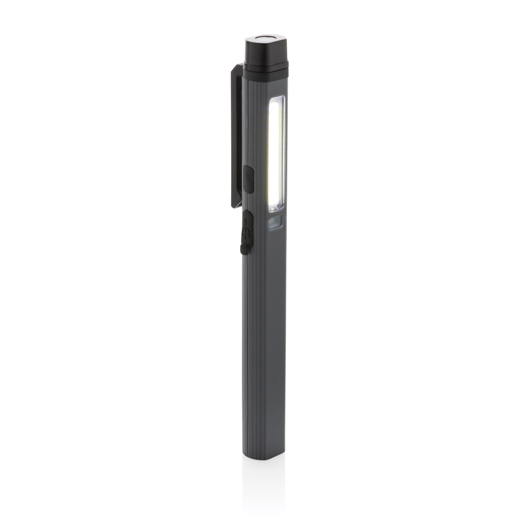 Taskusuuruses pliiatsvalgusti üliere COB-i, LED-i ja sinise valgusega, mis on valmistatud RCS-sertifikaadiga taaskasutatud ABS-plastist. Taaskasutatud kogusisaldus: 33% eseme kogumassist. RCS-sertifikaat tagab taaskasutatud materjalide täielikult sertifitseeritud tarneahela. Töötuli kasutab taaslaetavat A-klassi 460 mah liitiumakut, nii et patareisid pole vaja vahetada. Laadige lihtsalt oma USB-pesa kaudu uuesti. Töövalgustiga on kaasas 260 luumenine COB, 80 luumenine LED ja sinine valgus. 4 režiimiga: COB, COB 50%, LED valgus ja sinine tuli. Klambriga tagaküljel. C-tüüpi pordiga laadimiseks. Tööaeg ühe laadimisega: 3 tundi.