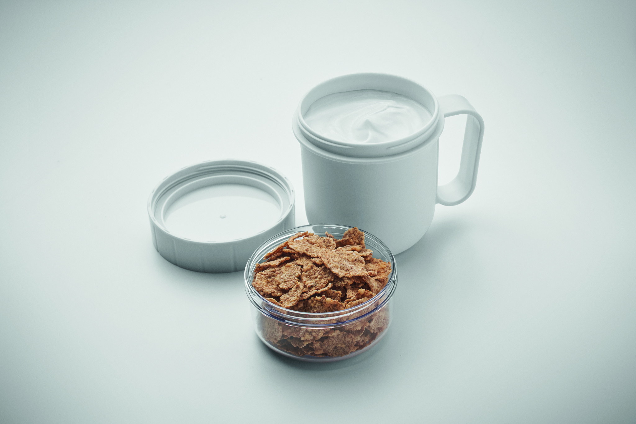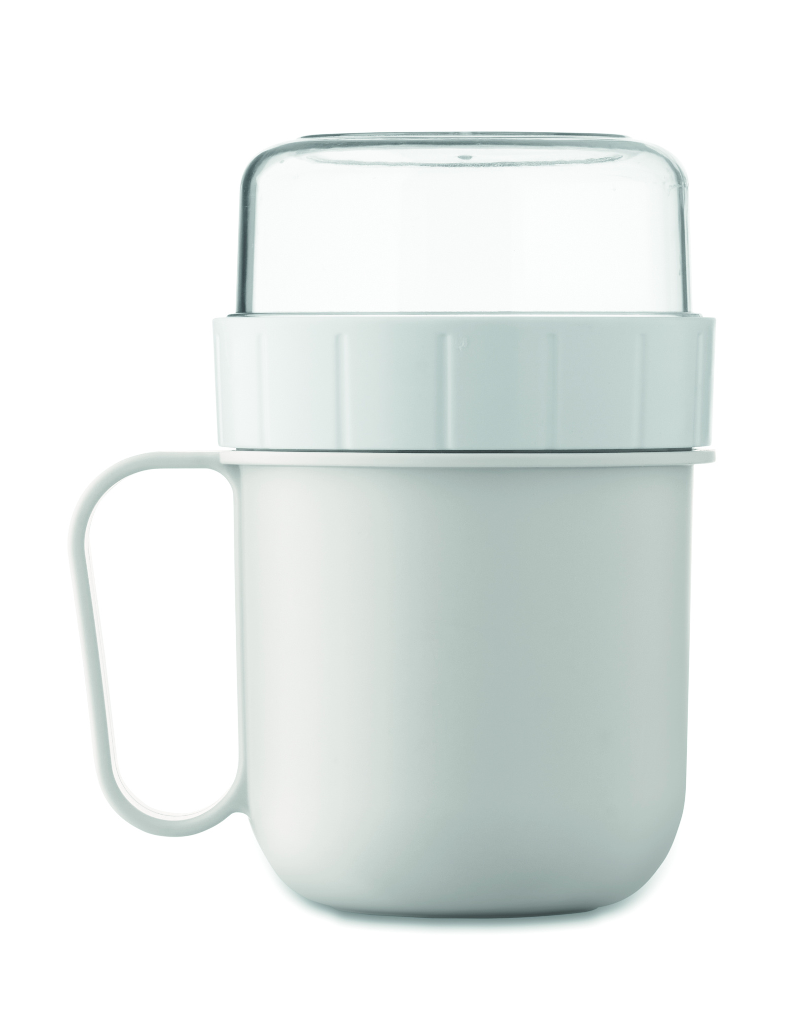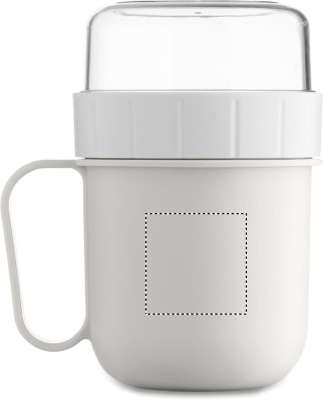 Mugav viis hommikusöögi kaasa võtmiseks. PP plastikust tass PS kaanega. Koosneb kahest eraldi mahutist koostisosade eraldi hoidmiseks. Mahutavus: 450 ml ja 160 ml. Lekkekindel.