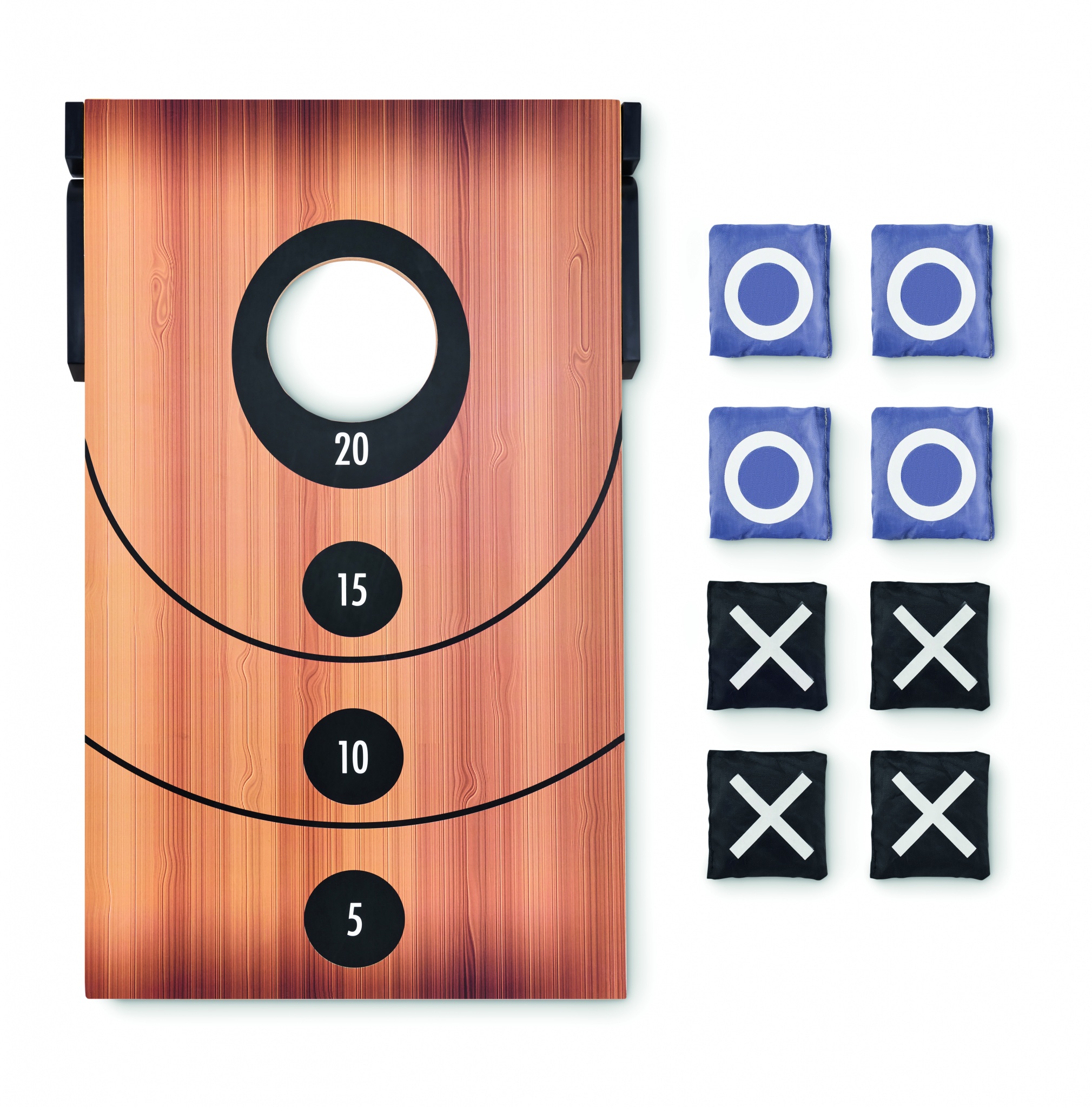 Kahepoolne liivakotiviskemäng ja tic-tac-toe. Kaasas MDF plaat ja 8 viskekotti.