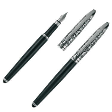 Korkidele on graveeritud tähestikulised tähed ning see disain ja klambri stiil koos musta lakitud tünniga jätavad suurepärase mulje, samal ajal kui metallist osad aitavad kaasa ületamatule kvaliteedile. Sinise tindiga pastapliiatsi täidis on 1 mm ots pehmeks suurepäraseks kirjutamiseks ja täitesulepeaga on kaasas üks standardne sinine tindikassett, mis on hõlpsasti saadaval parimatelt jaemüüjatelt. Atraktiivses ja elegantses kinkekarbis on lisaks must pastapliiatsi lisatäide ning autentsussertifikaat.