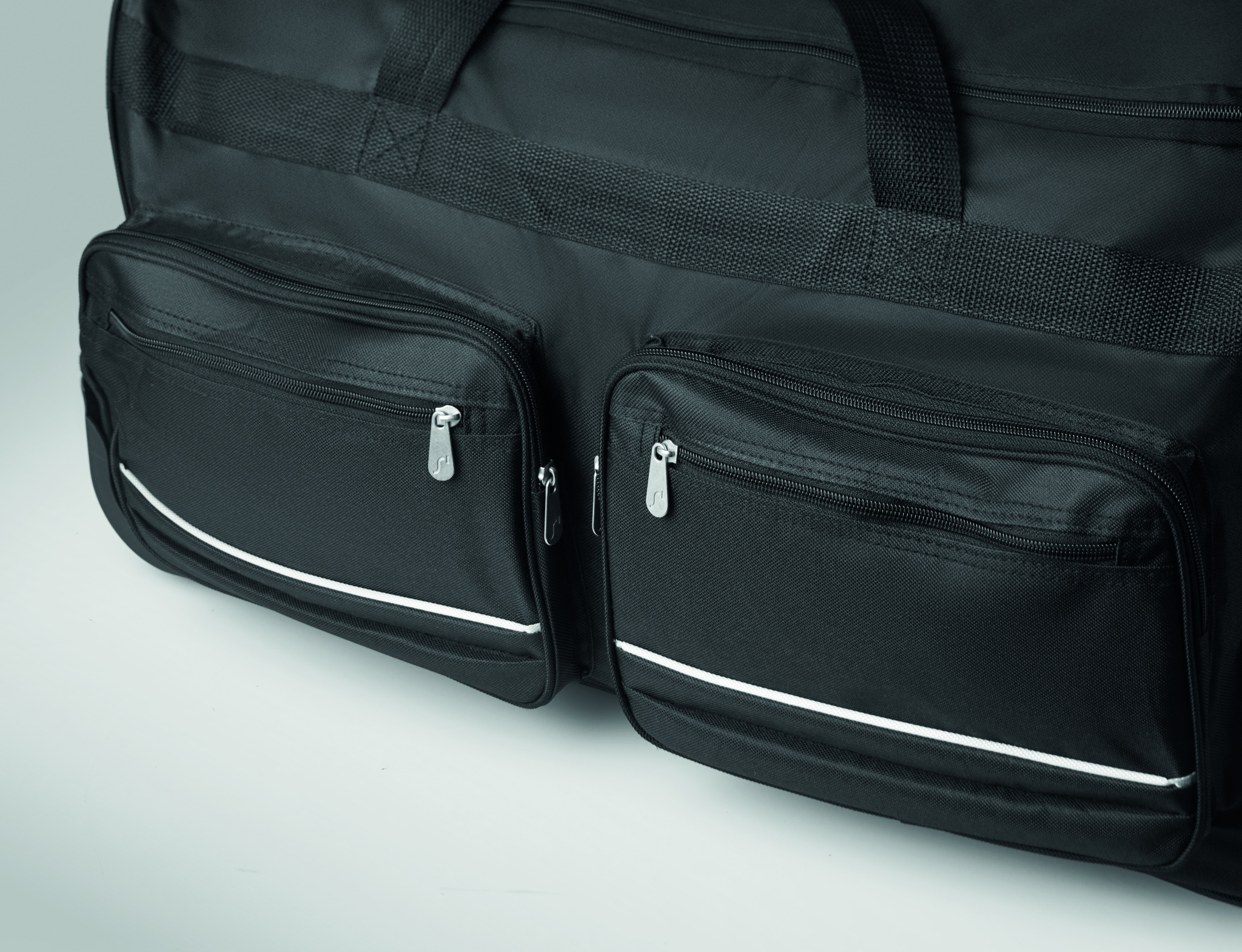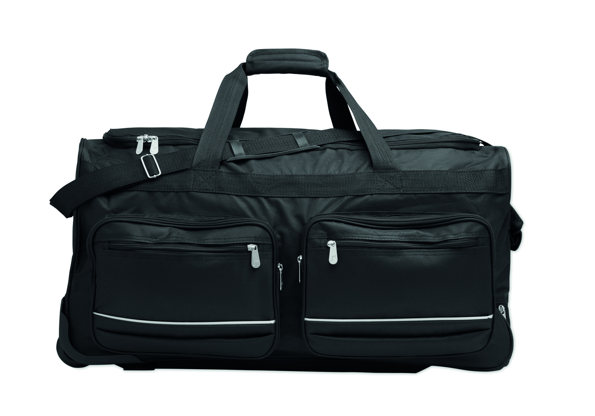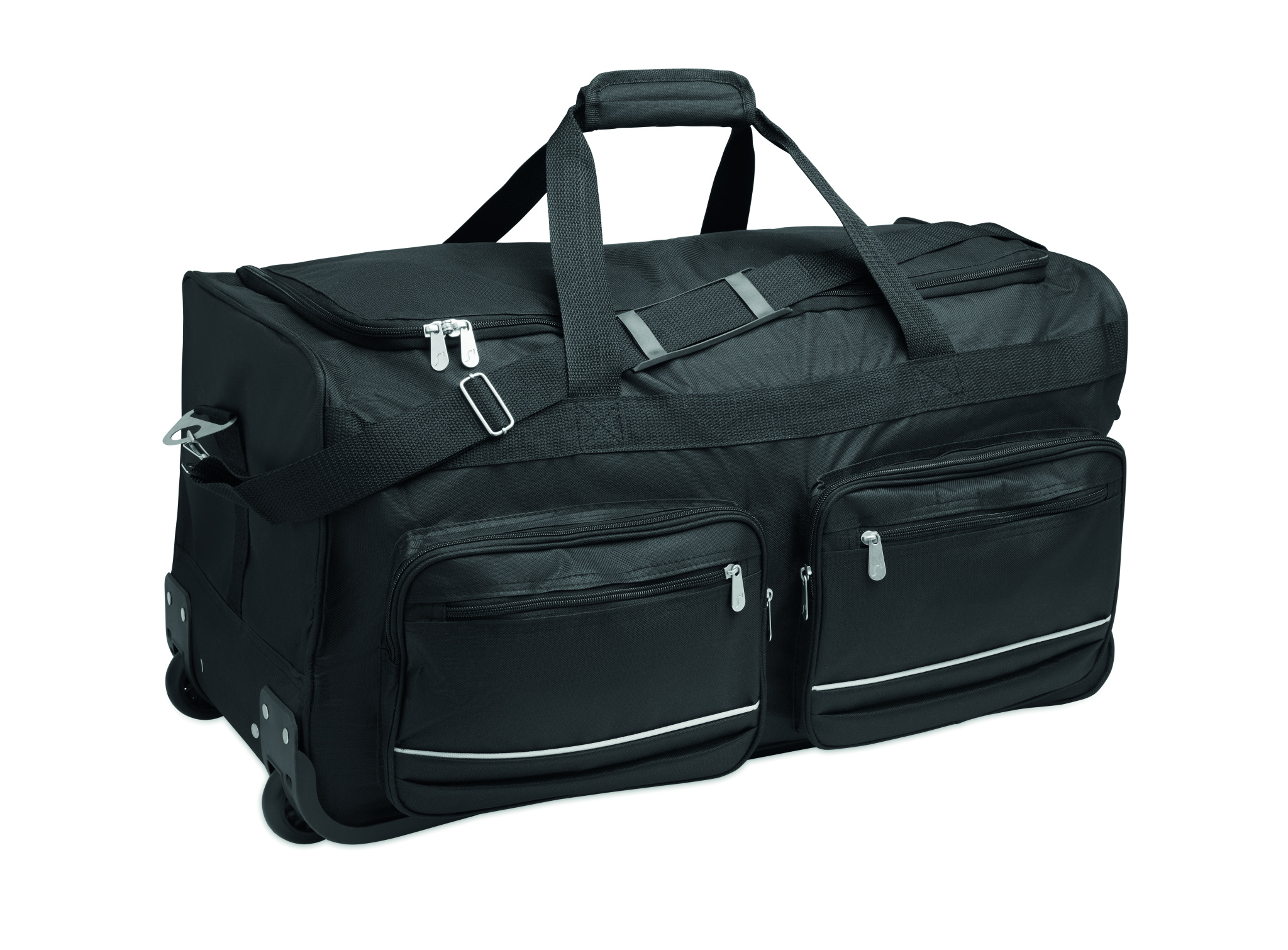 Pehme reisikoti käru 600D RPET materjalist. Lukuga esitasku. Kaks küljetaskut. Kolm sisetaskut. Polsterdatud õlarihmad. Kaks ratast ja topelttoruga raam.