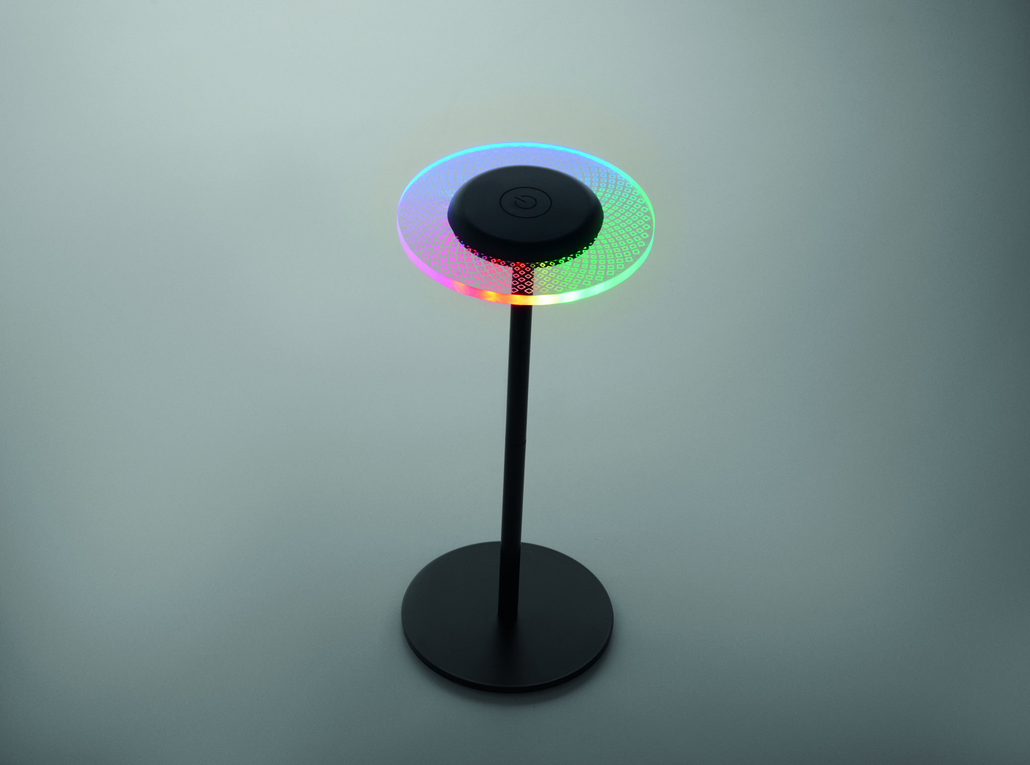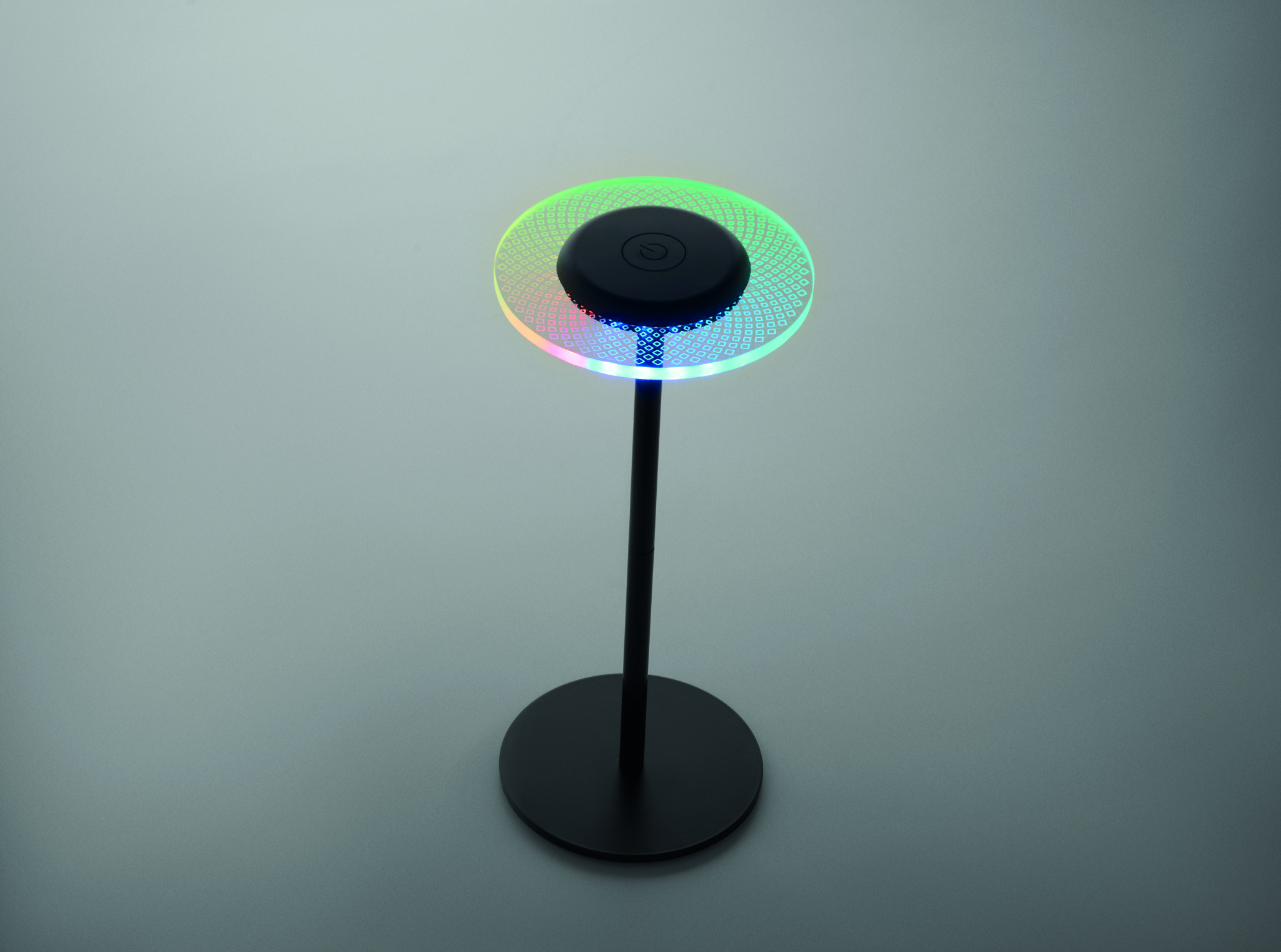 Laetav RGB laualamp rauast korpuses 39 LED-tulega ja astmevaba hämardusega. Sooja või värvimuutva valguse valikuga. Sisseehitatud 2000 mAh aku kestab kuni 6 tundi.