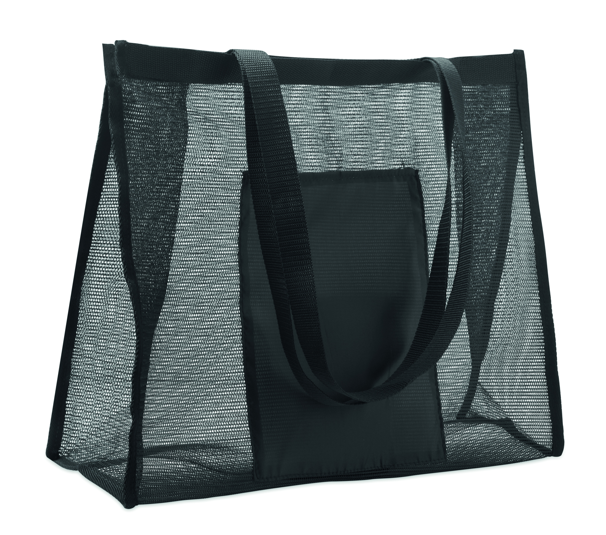 RPET võrgust ja 210D RPET-ist lühikeste sangadega ostukott. Suure avatud esitaskuga. Mahutavus 20 l, kandevõime kuni 10 kg.