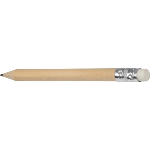 Puidust minipliiats kustutuskummiga. Pliiats on teritatud.