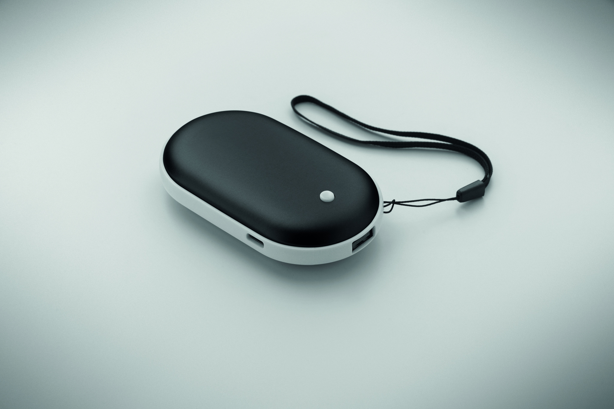 Alumiiniumist elektriline kätesoojendaja kolme kuumutustasemega (45°C, 50°C, 55°C) ja sisseehitatud 5000mAh akupangaga. Kahepoolne soojendus, C-tüüpi sisend/väljund, USB-A ja DC5V/2A väljund ning laadimiskaabel on komplektis.
