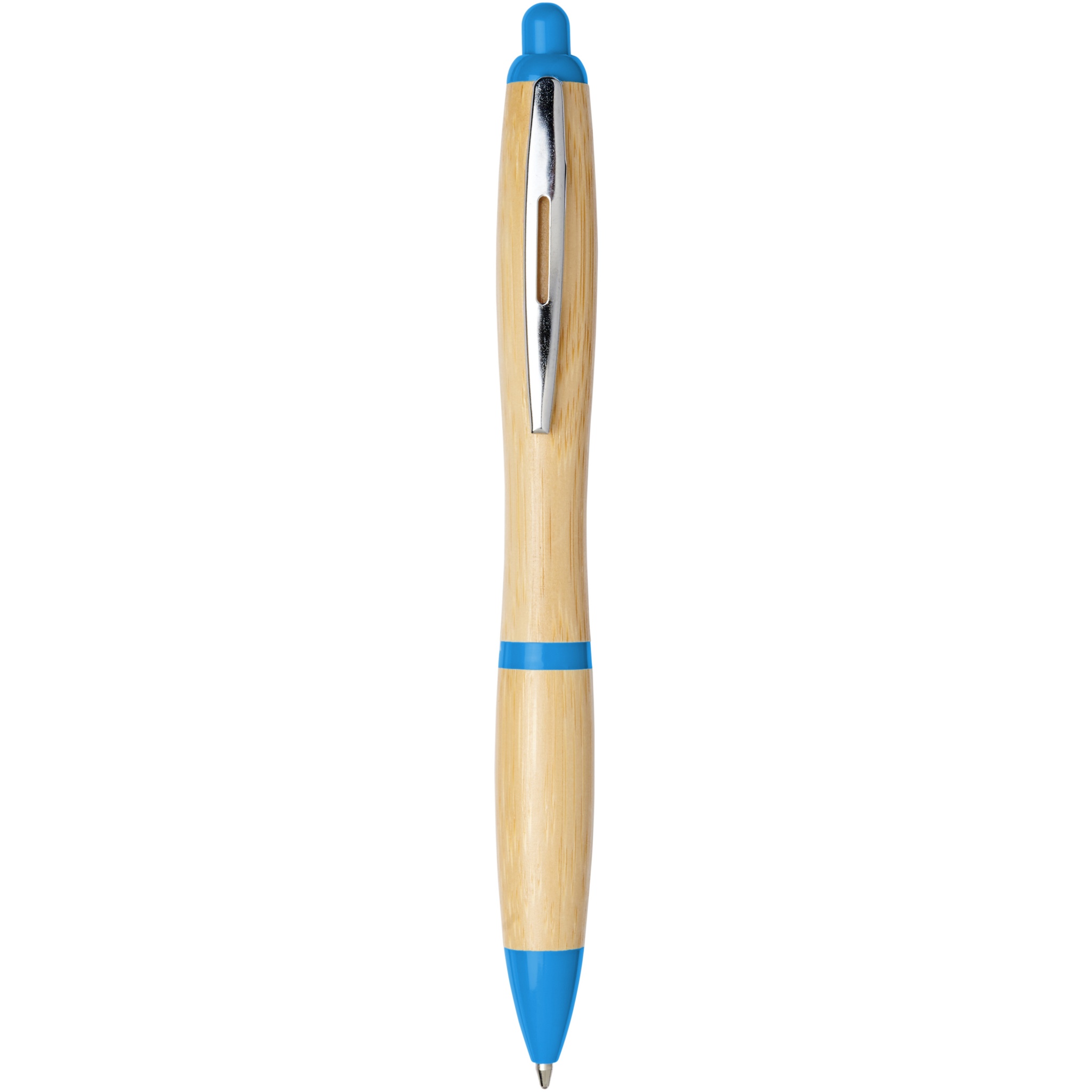 Klõpsamismehhanismiga pastapliiats, bambusest silinder, millele on lisatud kroomitud klamber ja ABS-plastist ääristused. Bambusest materjali värvus võib erineda.