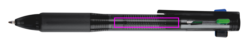 Plastikust pastapliiats 4 värvilise kirjutusmiiniga (sinine, must, punane ja roheline). Teie logo trükitakse klipi alla.