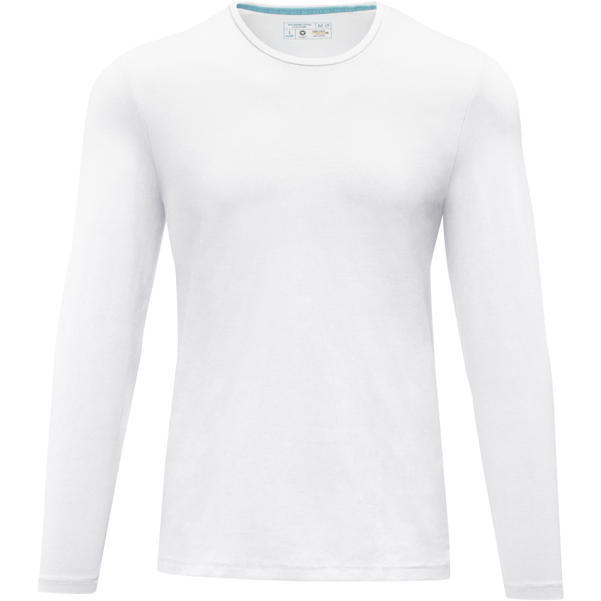 Ponoka pikkade varrukatega meeste orgaaniline T-särk, Valge