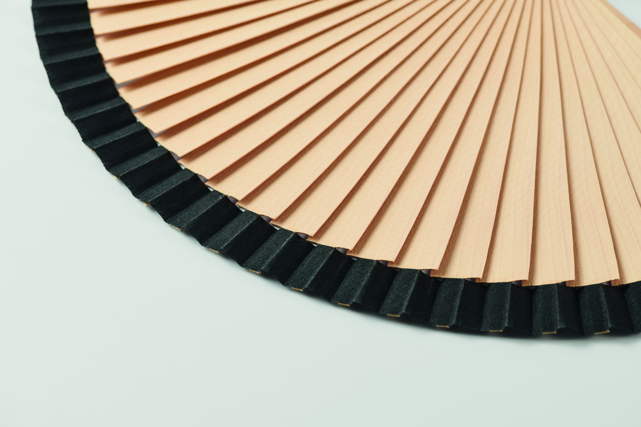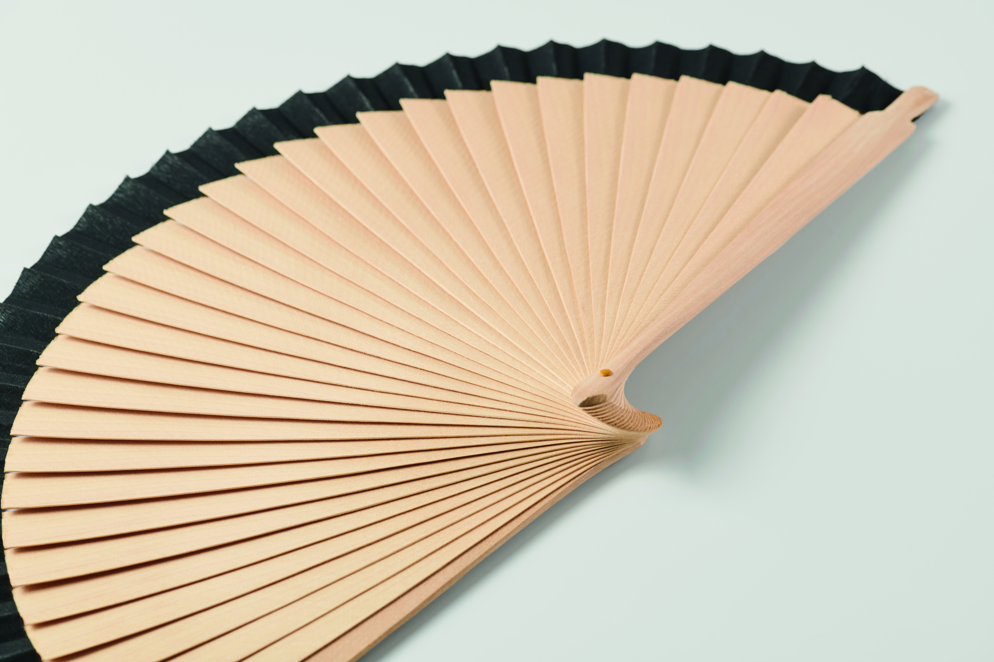 Puidust käsiventilaator, mis on valmistatud Schima Superba puidust ja polüestrist, 34 ribiga. Elegantne disain.