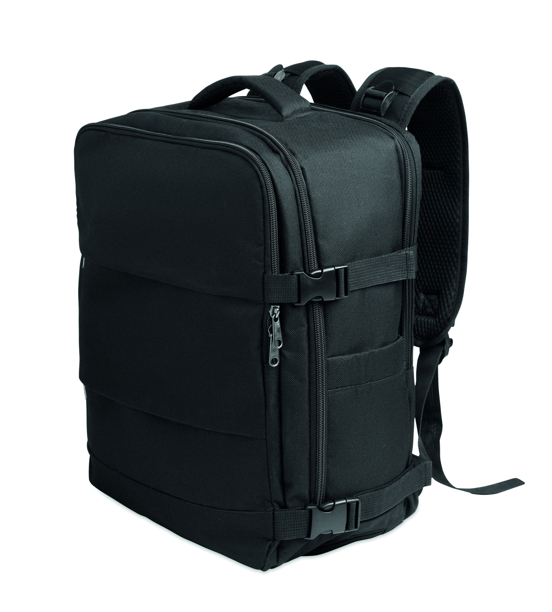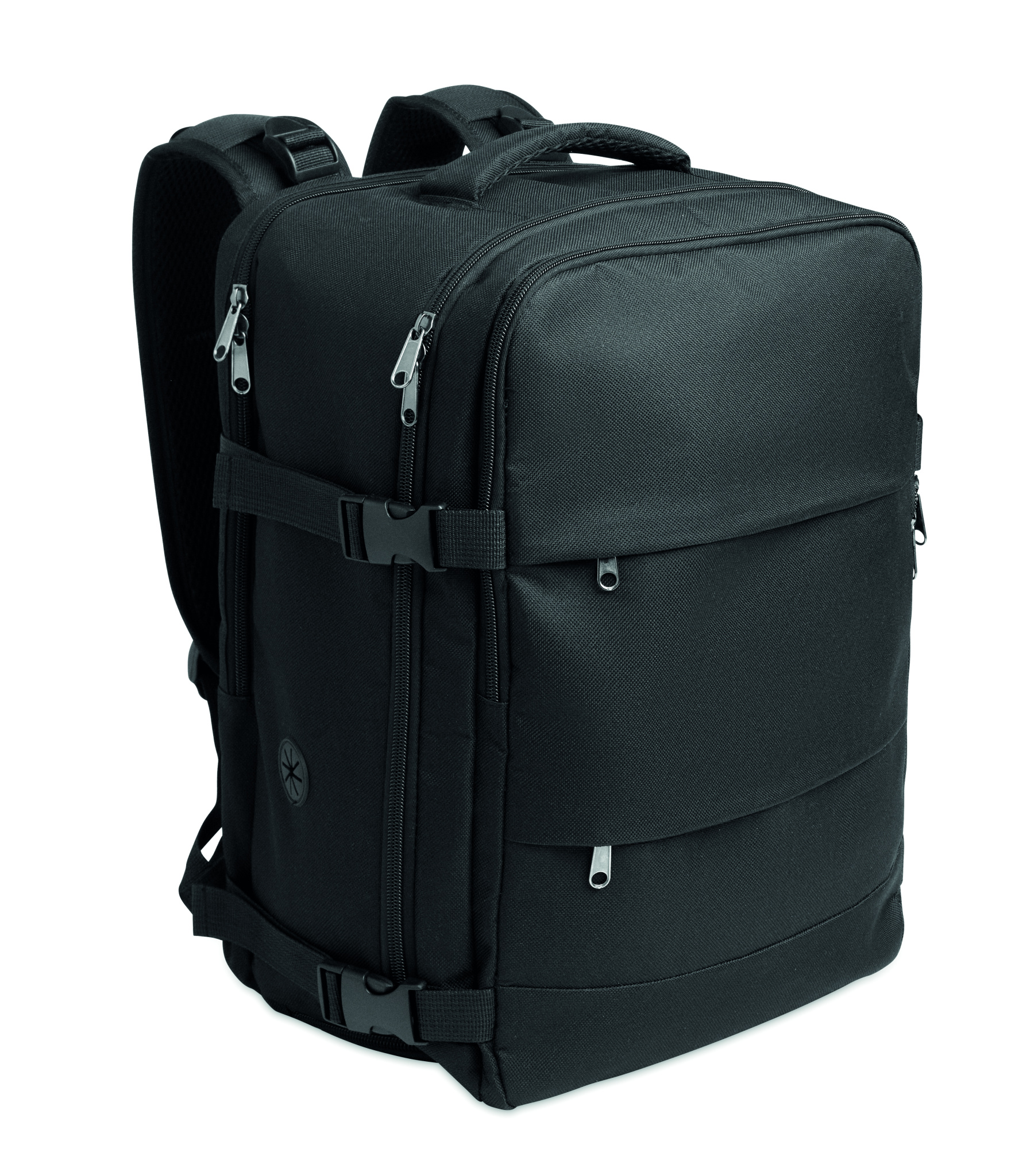Salongimõõdus pikendatav seljakott 600D RPET polüestrist PU-tagusega ja 180° avausega. Sisaldab jalanõude vaheseina, polsterdatud 15-tollist sülearvutitaskut, võrgust rihmasid, pagasirihma ja külgmisi pandlaid.
