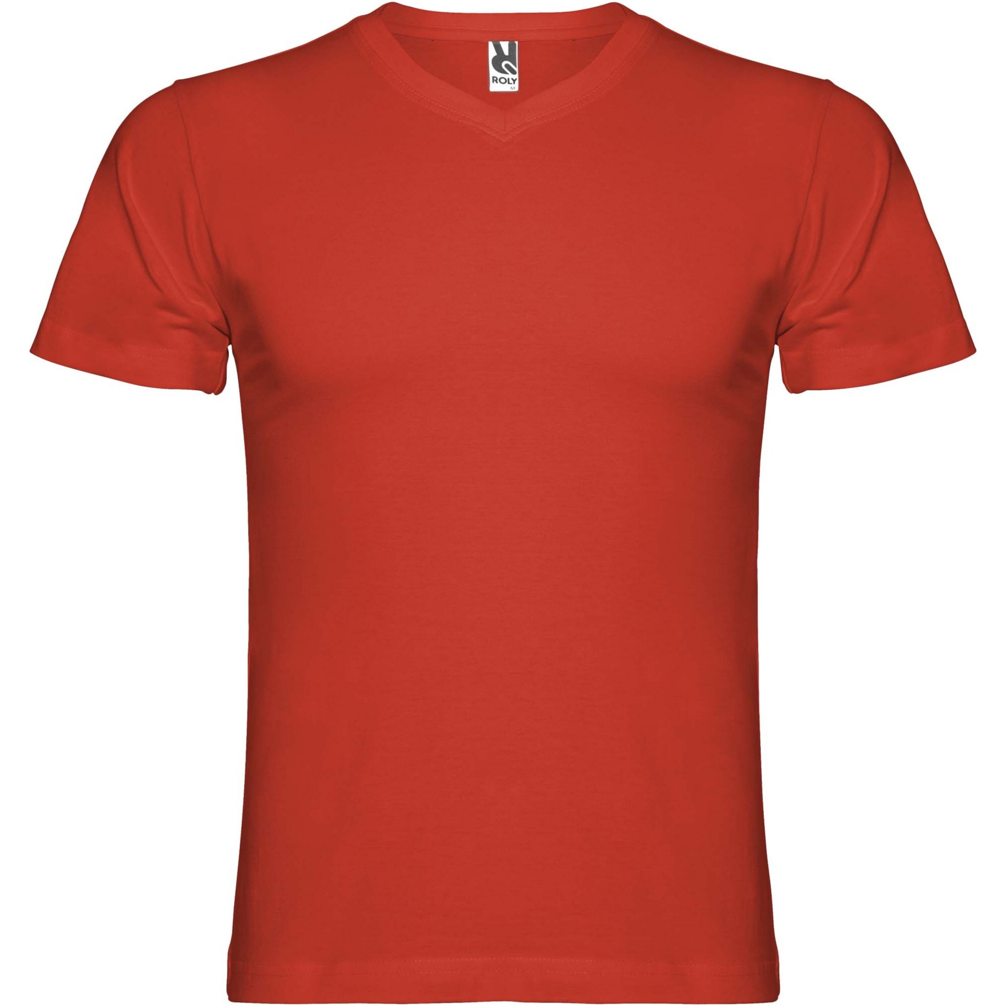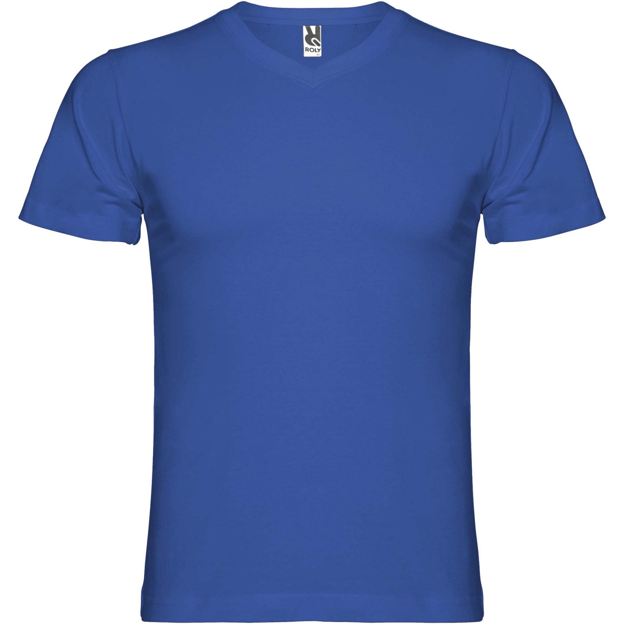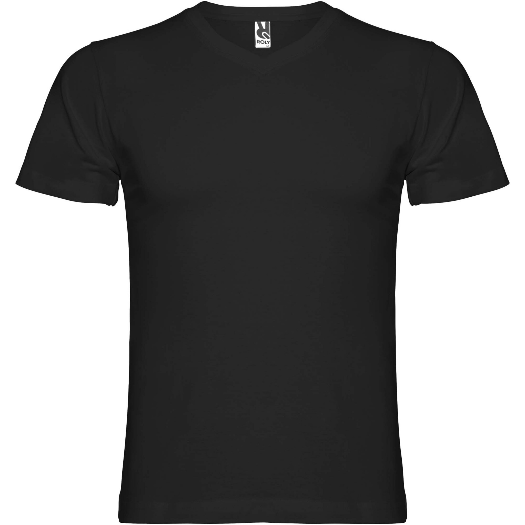 Torujas lühikeste varrukatega t-särk 2-kihilise v-kaelusega. Tugevdatud kaetud õmblused kraes ja õlgades. Eemaldatav etikett. Modell on 190 cm pikk ja kannab suurust L.
