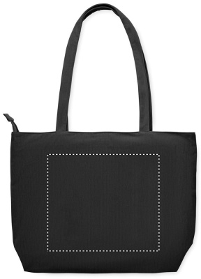 Suur polüestervelvetist ostu-/rannakott, millel on pealmine lukuga sulgur, avatud esitasku ja sisetasku. 220 g/m².