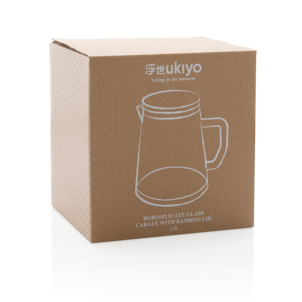 See Ukiyo karahvin täiustab iga söögilauda! Kaunis karahvin on valmistatud vastupidavast boorsilikaatklaasist ja talub erinevaid temperatuure – serveeri jääkülmi jooke või soojendavat teed, mida iganes soovid! Moodne kuju ja puhtad jooned sobivad igale lauale. Bambusest kaaned lisavad loomulikku puudutust. Mahutavus 1,2L.