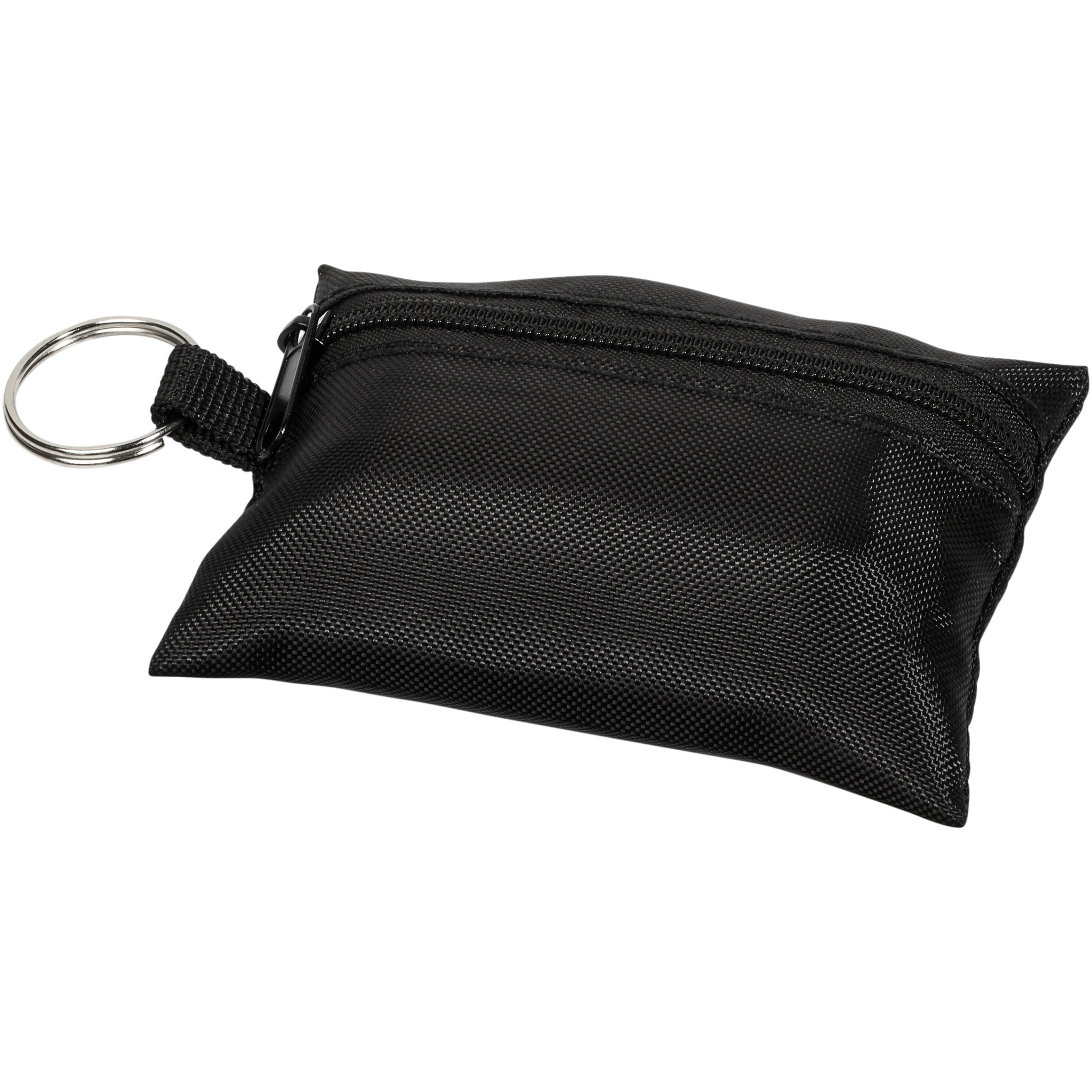 Mugav polüesterkott võtmehoidjaga, mis mahutab 16 esmaabitarvikut. Komplekt sisaldab kääre (9 cm), 2 nahapuhastuslappi, 1 elastset sidet (4 m x 6 cm), 2 vatipalli (0,5 g), 3 haaknõela (3,6 cm), 5 plaastrit (45 x 19 mm) ja 2 puuvillanõela (8 cm). Suurepärane reisimiseks, festivalideks, üritusteks ja muudeks vabaõhutegevusteks ning sellel on suur kaunistusala. Esmaabikomplekti peetakse meditsiiniseadmeks ja seda reguleerib direktiiv 93/42/EMÜ, lähtudes kavandatud kasutusest: "haiguste diagnoosimine, ennetamine, jälgimine, ravi või leevendamine". See meditsiiniseade kuulub I KLASSI, Is.