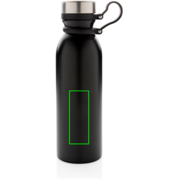 Lekkekindel vasest vaakumisolatsiooniga pudel musta silikoonist kandeaasaga. Ühe käega joomine tähendab, et kaant pole vaja hoida ega kaasas kanda. Kaasas kahekordse seinaga vaakumkonstruktsioon ja vase isolatsioon, mis tähendab, et see hoiab joogid kuumana kuni 8 tundi ja külmana kuni 24 tundi. Konstruktsioon takistab kondenseerumist pudeli välisküljel. Sisu: 600 ml.