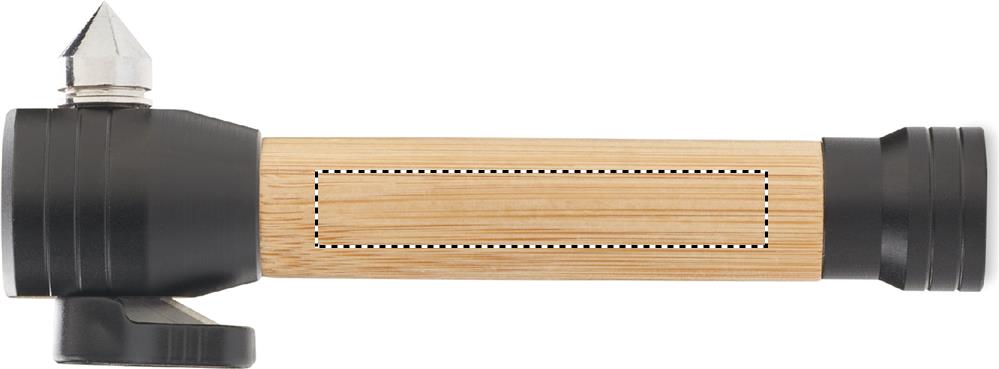 Logo trade mainostuotet tuotekuva: 3 in 1 bambu taskulamppu, jossa on hätävasara ja turvavyöleikkuri mukautettavalla painatuksella