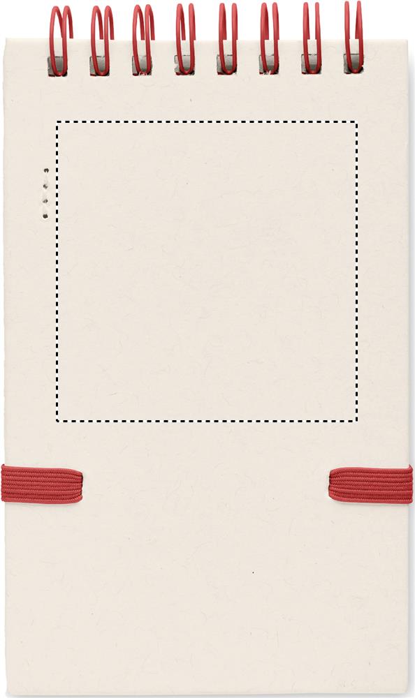 A6 kokoinen muistikirja kierrätyskartongista (70% maitopurkeista tehtyä kartonkia ja 30% kierrätyspaperia) Muistikirjassa on 70 tyhjää sivua, kierresidonta, kiinnitys kuminauhalla ja kynäpidike. Settiin kuuluu samanvärinen kuulakärkikynä sinisellä musteella.