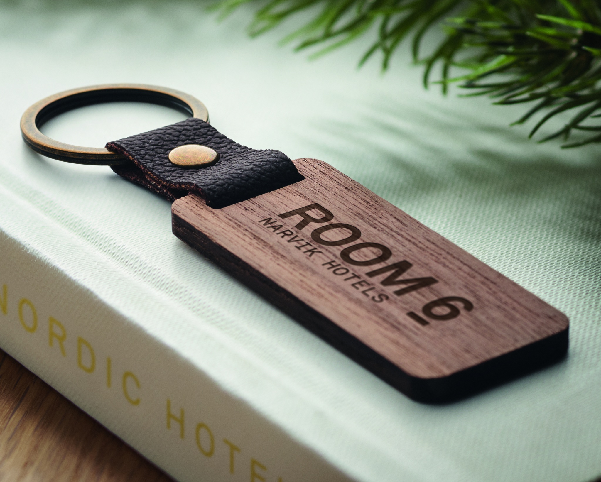 Logo trade mainostuote kuva: Avaimenperä pähkinäpuuta ja PU Kokkola