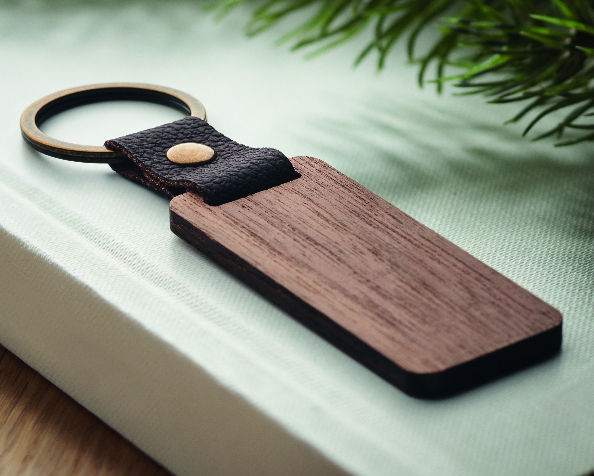 Logo trade mainostuotet tuotekuva: Avaimenperä pähkinäpuuta ja PU Kokkola