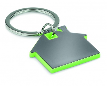 Ruostumattomast teräksestä valmistettu talon muotoinen avaimenperä, talon reunat ABS- muovista.