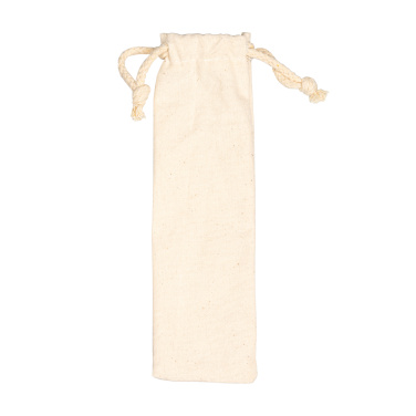 Ympäristöystävälliset bambu-aterimet, joissa on haarukka, veitsi ja lusikka puuvillapussissa. Ihanteellinen kuljettaa ja siksi erityisen sopiva retkeilyyn tai muuhun ulkoiluun. Logo on painettu pussiin.