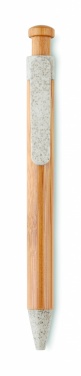 Kuulakärkikynä sinisellä musteella, bambu rungolla ja ympäristöystävällisillä vehnäolki (50%)/ABS- muovi (50%) osilla.
