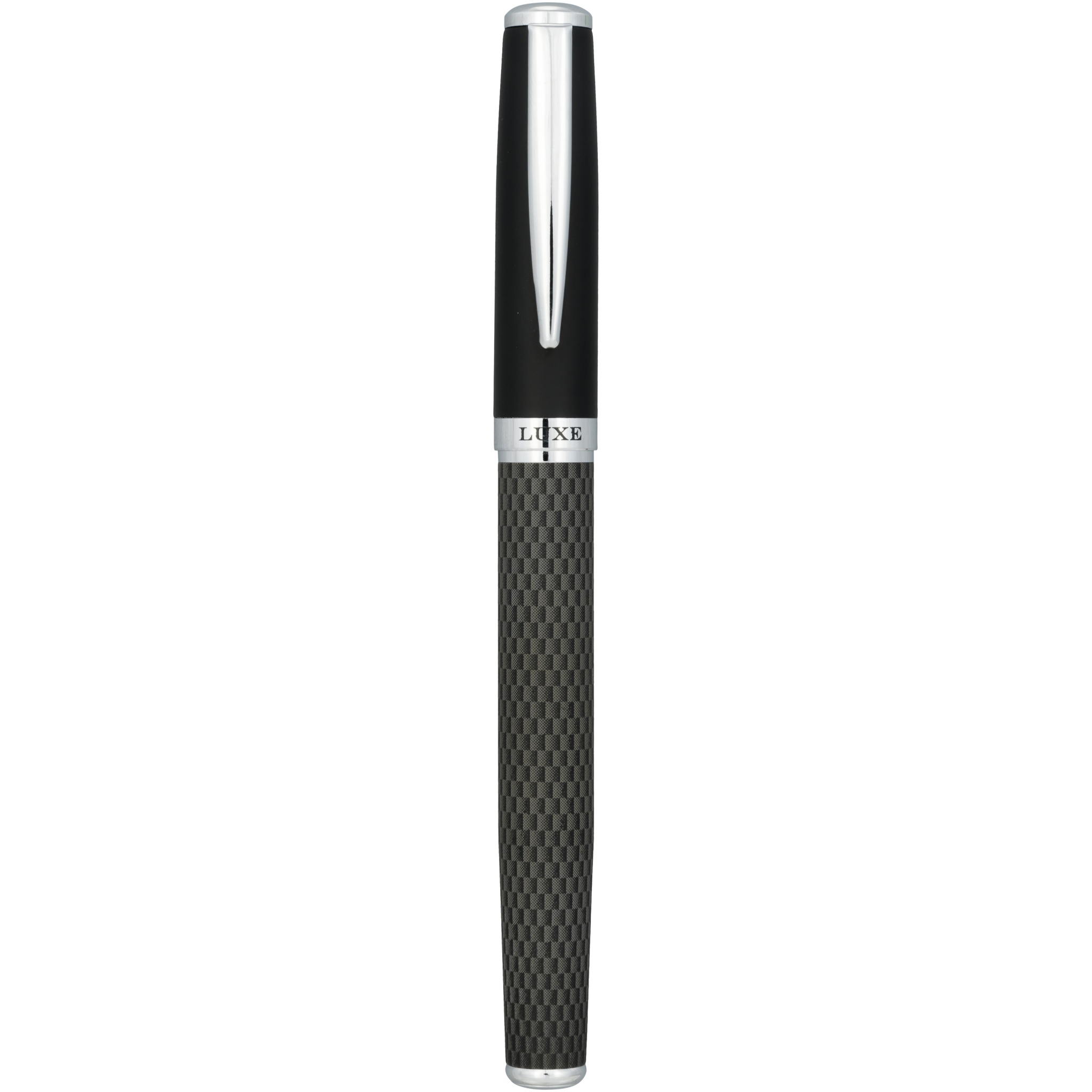 Hienovaraisesti erilainen, musta ja ylellisesti suunniteltu pari, johon kuuluu kuulakärki- ja mustekynä, jotka on viimeistelty painetulla hiilikuidulla. Sisältää laatua suojaavan pussin, pakattu ''LUXE''-lahjapakkaukseen.