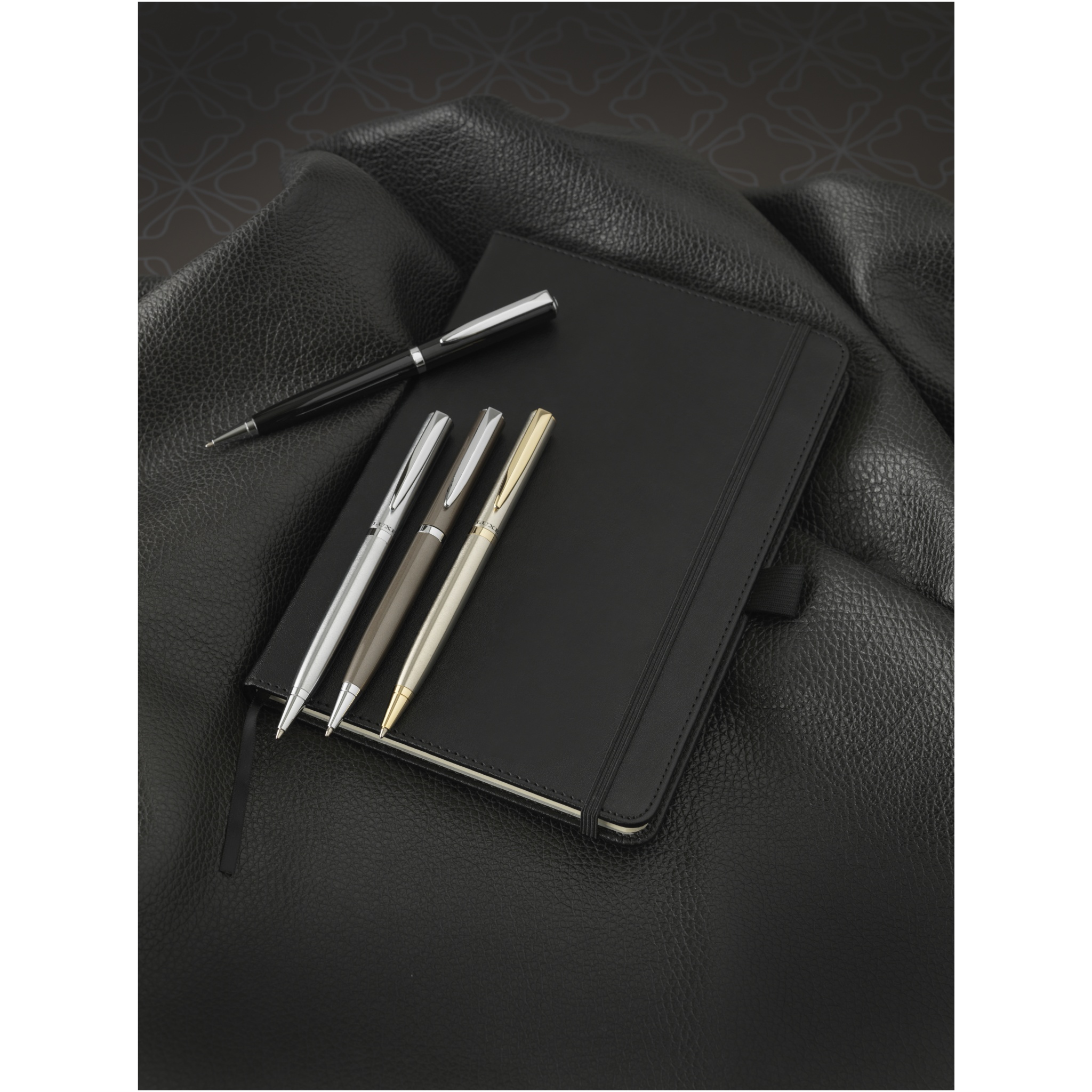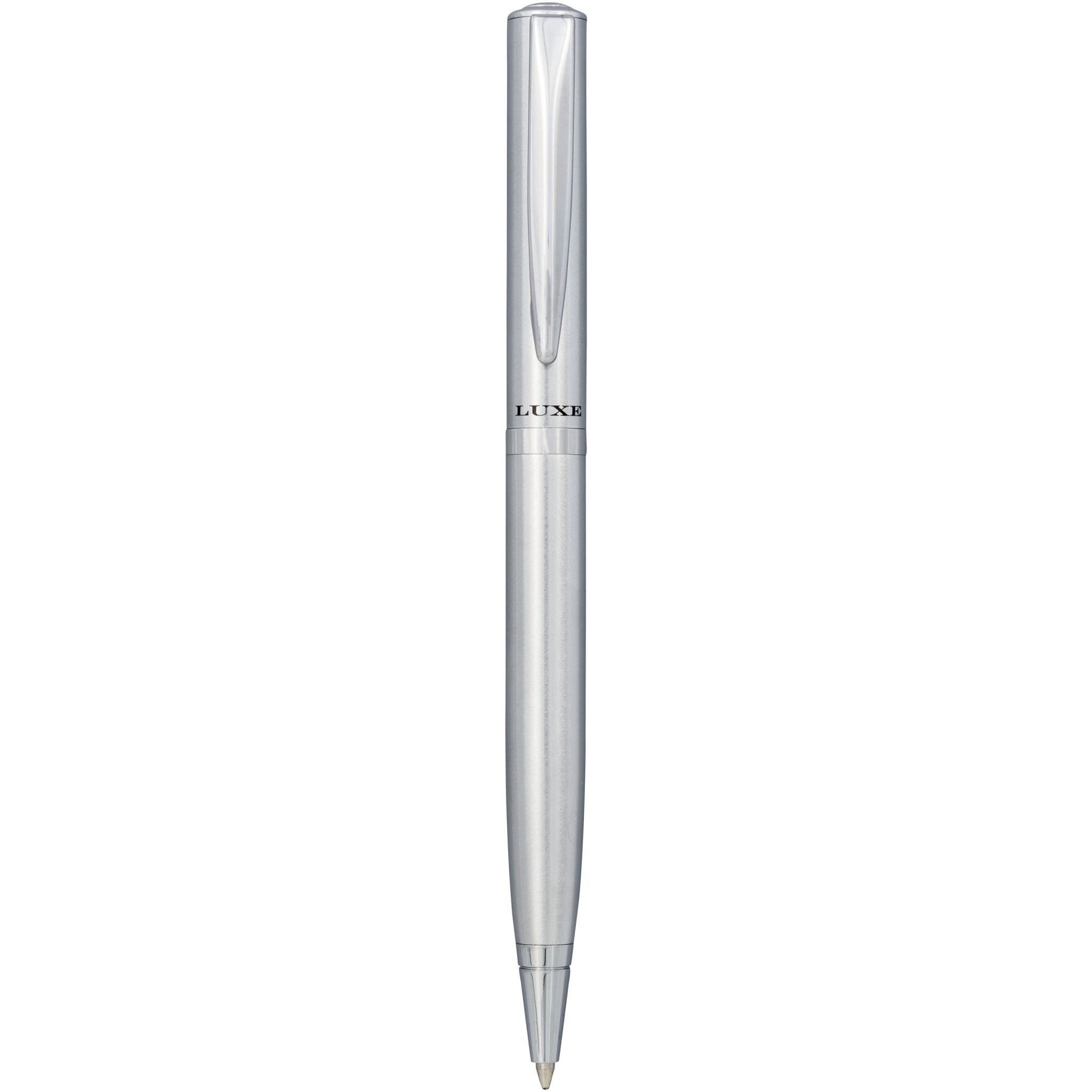 Ylellisesti suunniteltu kevyt kuulakärkikynä saatavilla mattaharjatulla kultaviimeistelyllä kullan värisillä yksityiskohdilla ja mattaharjattuna hopeana kromin värisillä yksityiskohdilla. Sisältää korkealaatuisen mustan täyttöpakkauksen, pakattu ''LUXE''-lahjapakkaukseen (16.5x4.5x2.8cm).