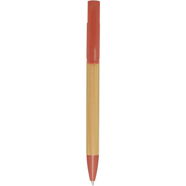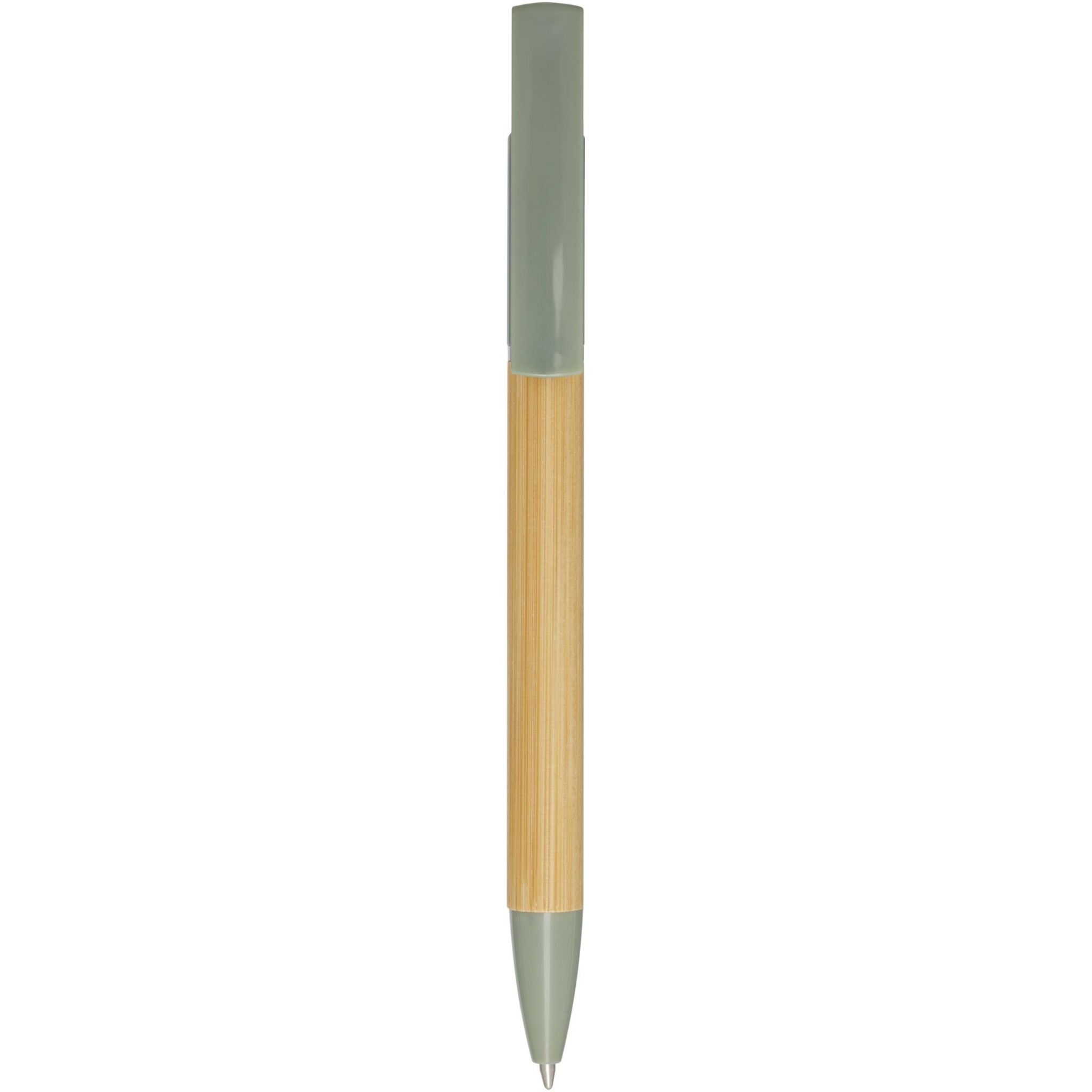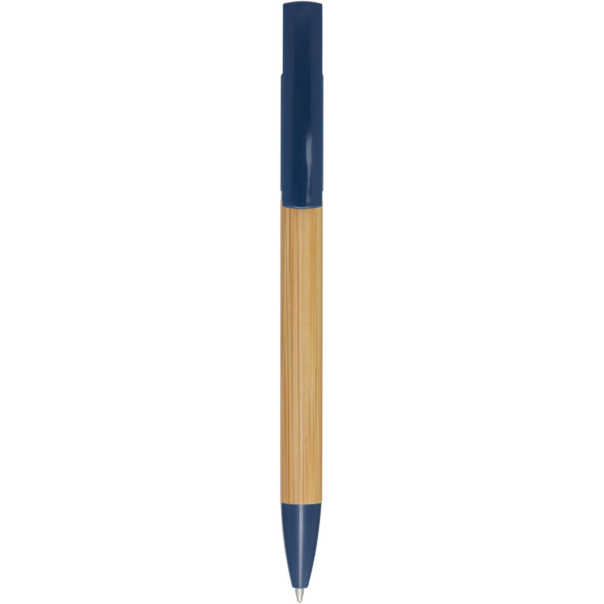 Bambukuulakärkikynä, jota voi käyttää myös puhelimen pidikkeenä. Painike ja keskiosan rengas on valmistettu kierrätetystä muovista, kärki messingistä ja runko vastuullisesti tuotetusta bambusta. Musteen väri: Sininen. Kirjoituspituus: 1000 metriä. Lyijyn paksuus: 1,0 mm.