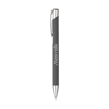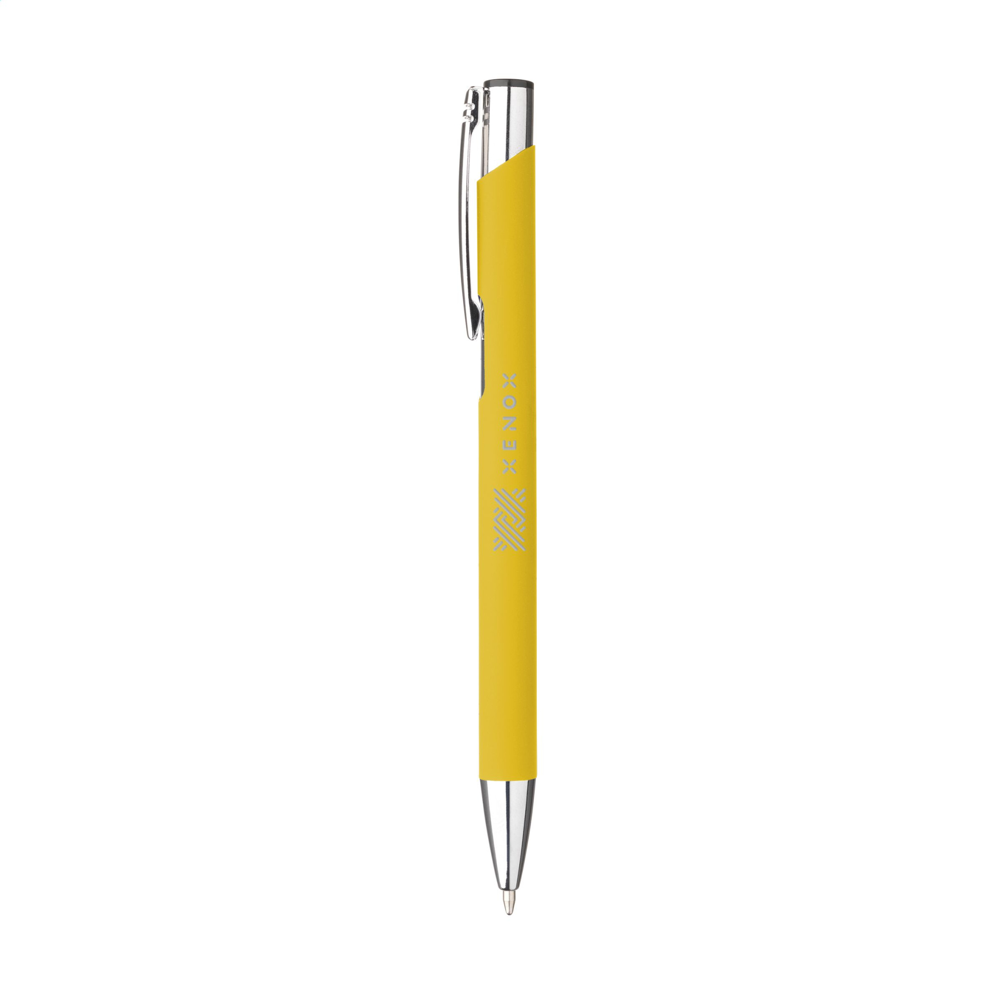 Alumiininen kuulakärkikynä metalliklipsillä ja sinisellä musteella. Tynnyri on päällystetty viehättävällä kumipinnoitteella. Tynnyri tarjoaa suuren tulostusalueen tekstille tai logolle.