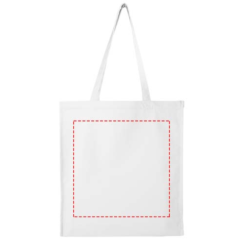 Sataprosenttisesta GRS-sertifioidusta kierrätyspuuvillasta (270 g/m²) valmistettu Florida-kangaskassi levikkeillä on vastuullisempi ja kestävämpi valinta päivittäisiin tarpeisiisi. Jopa 14 litran vetoisuuden ja 30 cm pitkien kahvojen ansiosta se sopii täydellisesti ruokaostosten, kirjojen tai päivittäistavaroiden vaivattomaan kuljettamiseen.