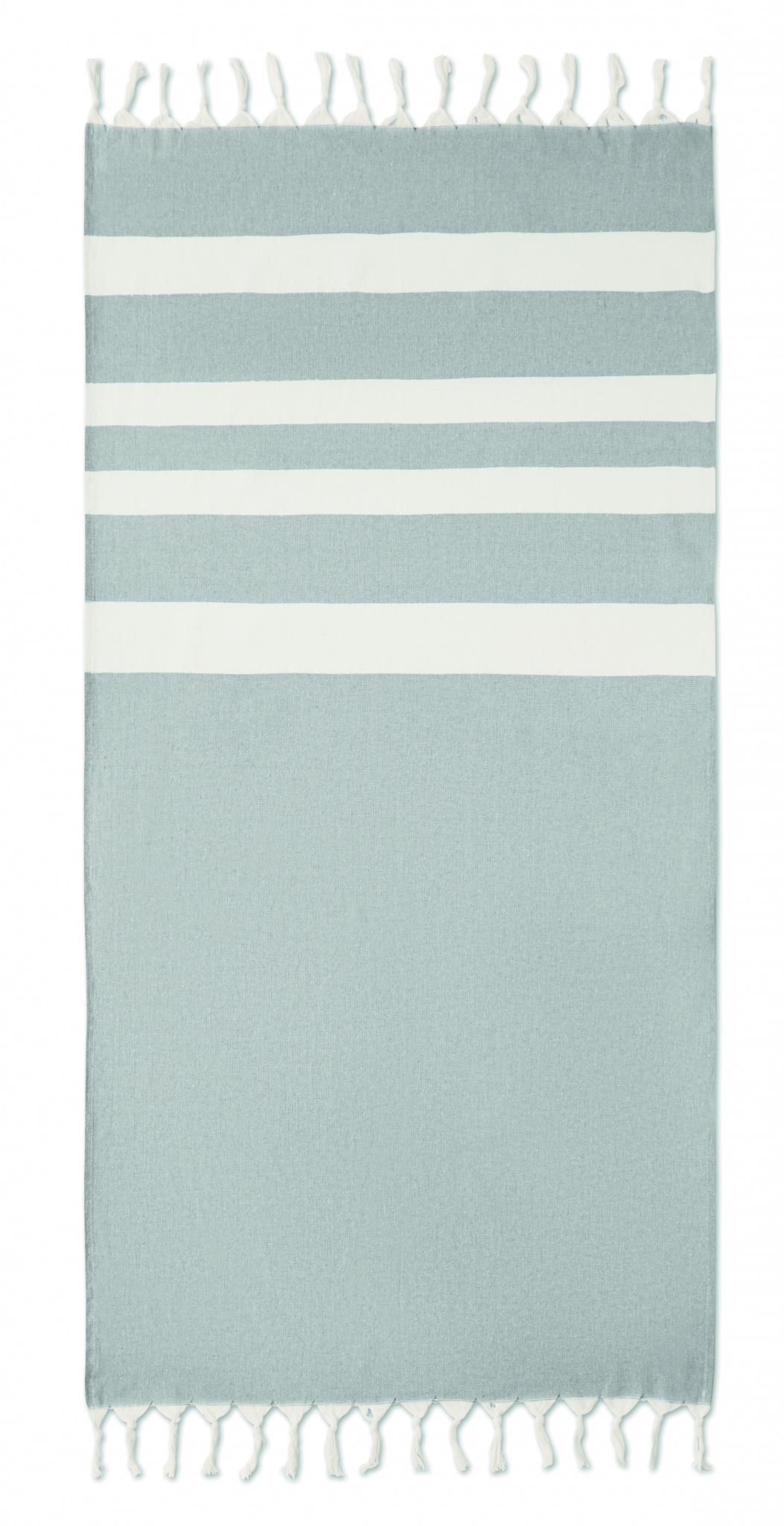 140 gr/m² hamam pyyhe kierrätetystä kankaasta. Koko 75x150 cm.
