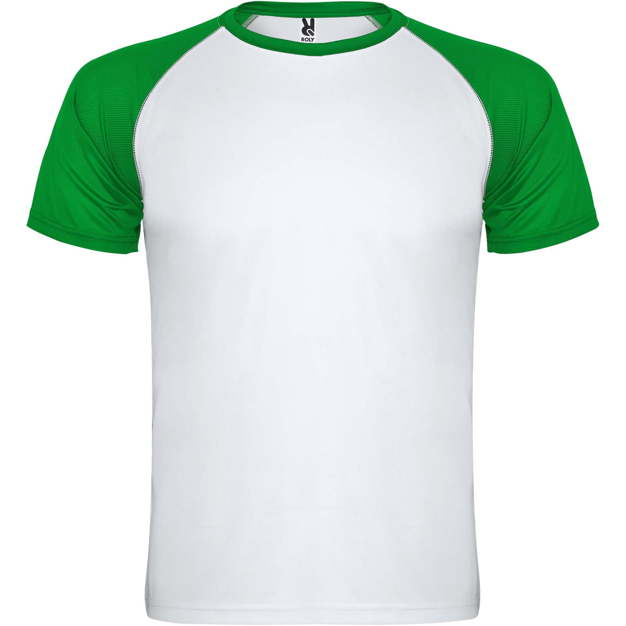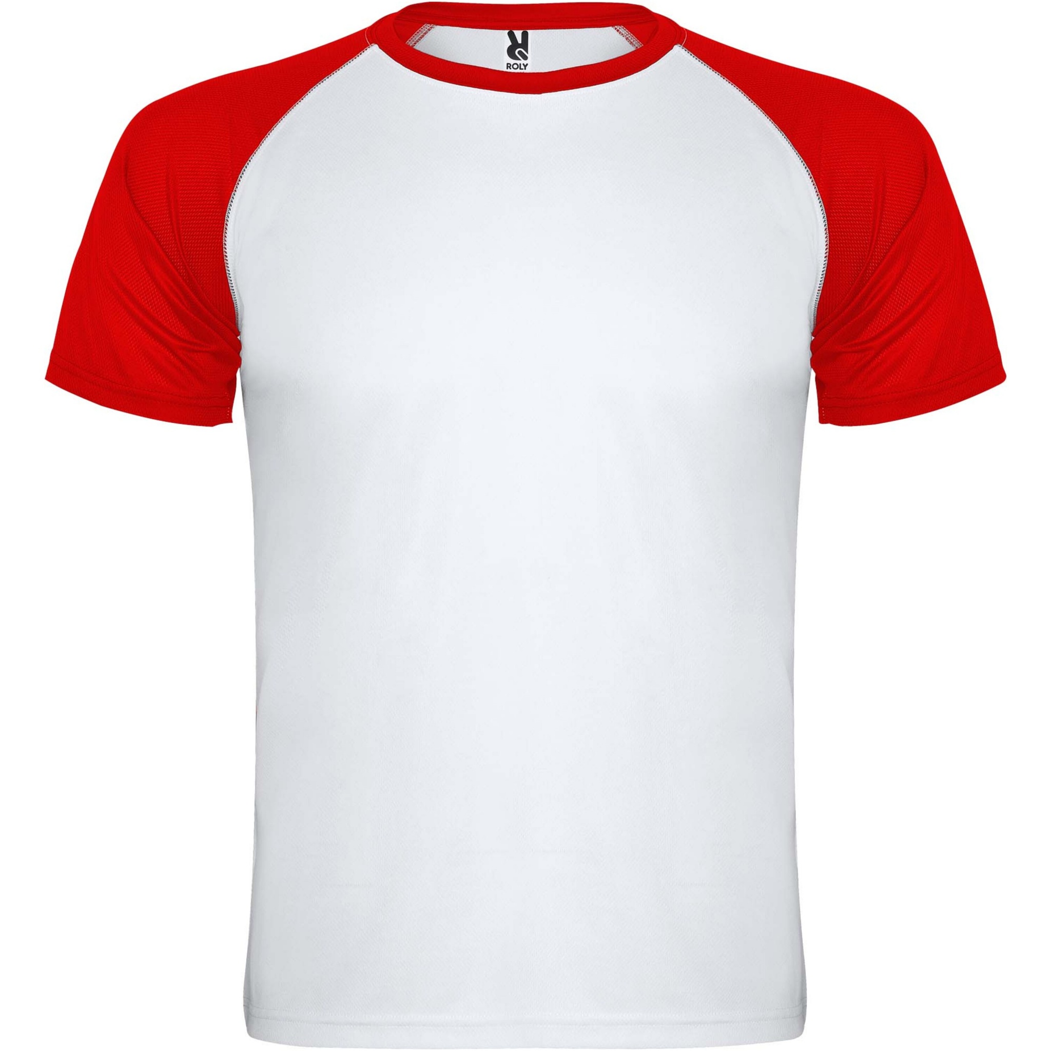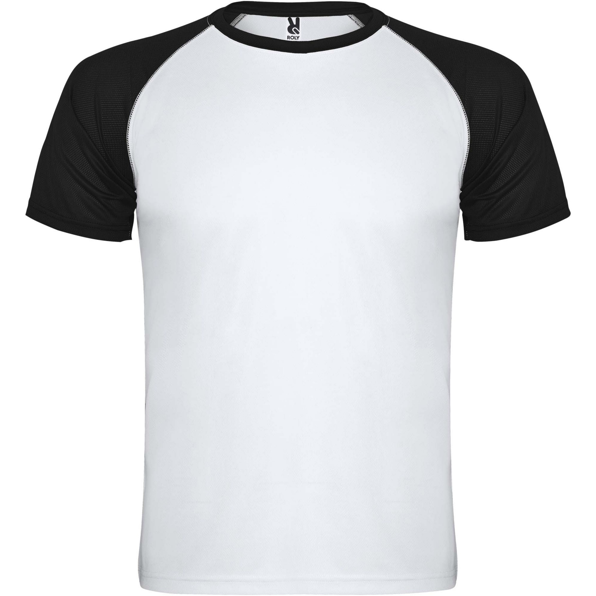 Tekninen ja hengittävä kangas. Raglan-kontrastihihat. Pyöreä pääntie, jossa kontrastiväriset vahvistetut koristesaumat. Irrotettava etiketti.