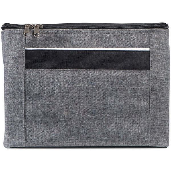 300D+600D polyesterikylmälaukku kantokahvalla, vetoketjukiinnitys, paikka kuudelle 500 ml:n tölkille tai pullolle ja logolla painettu etuosasto.