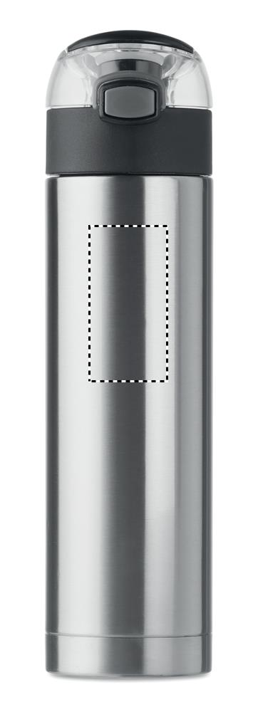 Kaksiseinäinen ruostumattomasta teräksestä valmistettu 400 ml juomapullo, turvalukko kannessa ja helppo paina-avataksesi optio, vuoto vapaa.