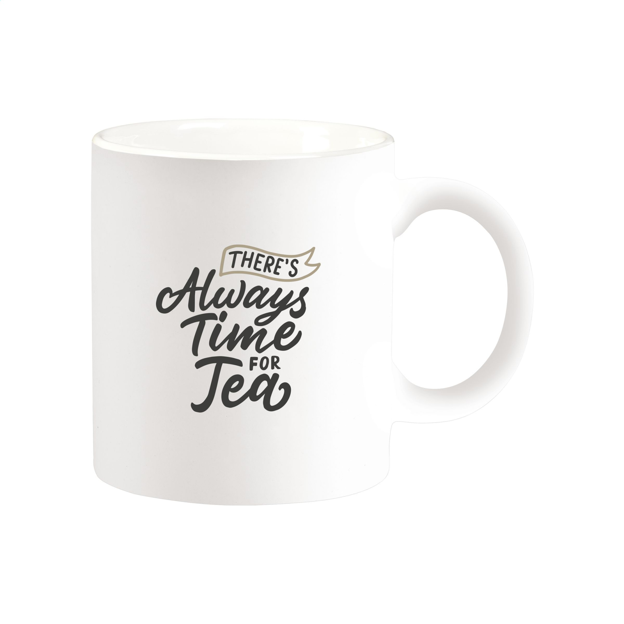 Laadukas keraaminen muki. Täysin valkoinen tai värillinen ulkopinta. Astianpesukoneen kestävä. Jälki on astianpesukoneessa testattu ja sertifioitu: EN 12875-2. Tilavuus 350 ml.