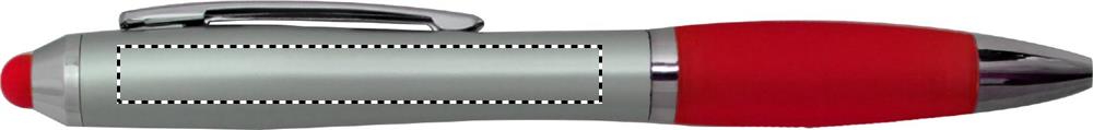 Kiertomekanismilla varustettu kuulakärkikynä sinisellä musteella, grippi ja kosketusnäyttöpää.