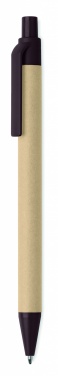 Painomekanismilla toimiva kuulakärkikynä sinisellä musteella, kynän runko on valmistettu paperista ja yksityiskohdat 40% kahvin kuoresta/ 60% ABS.