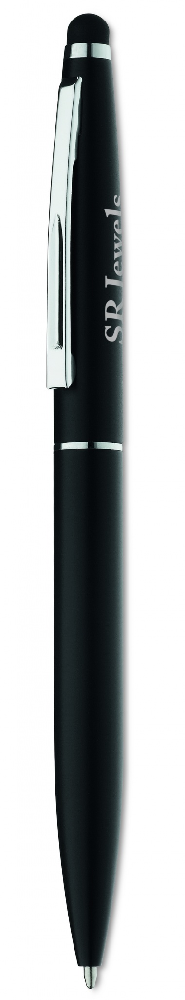 Alumiininen twist action kuulakärkikynä sinisellä musteella ja kosketusnäyttöpäällä.