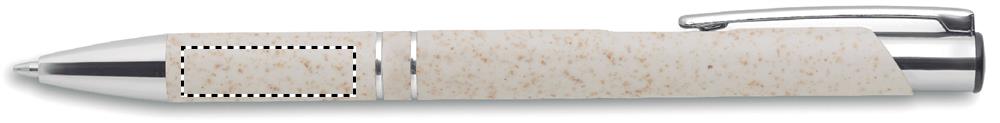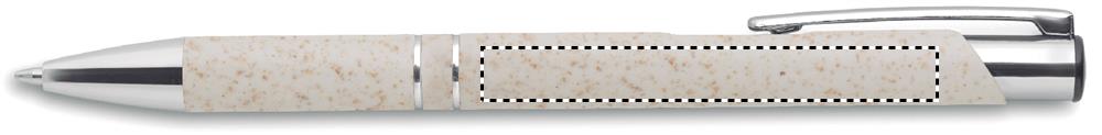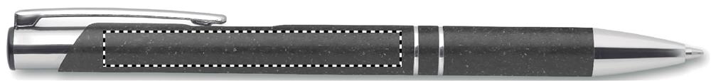 Kuulakärkikynä sinisellä musteella, 50% vehnän olkea ja 50% ABS-muovia hopeaisilla yksityiskohdilla.