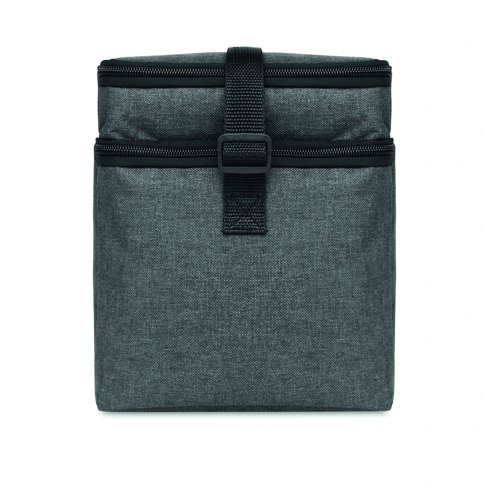 600D RPET 2- sävyinen kylmälaukku, 2 lokerolla ja PEVA vuorella. Sisältää taskun edessä ja säädettävän olkahihnan. Eristysmateriaalina 0,15mm PEVA + 3 mm vaahtomuovia.